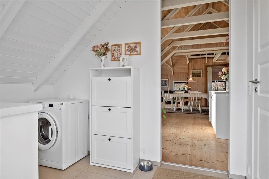 Ferienhaus in Norsminde, Ostjütland, mit Platz für 6 Erwachsene und 1 Haustier(e). Es erwartet Sie eine gemütliche Einrichtung mit u.a. Kamin, darüber hinaus sind Waschmaschine und Spülmaschine in dieser Unterkunft vorhanden.