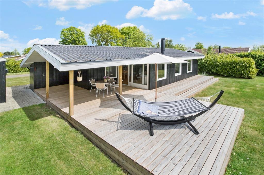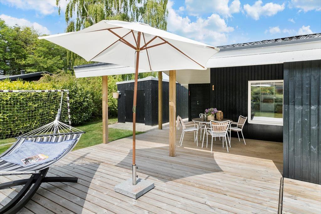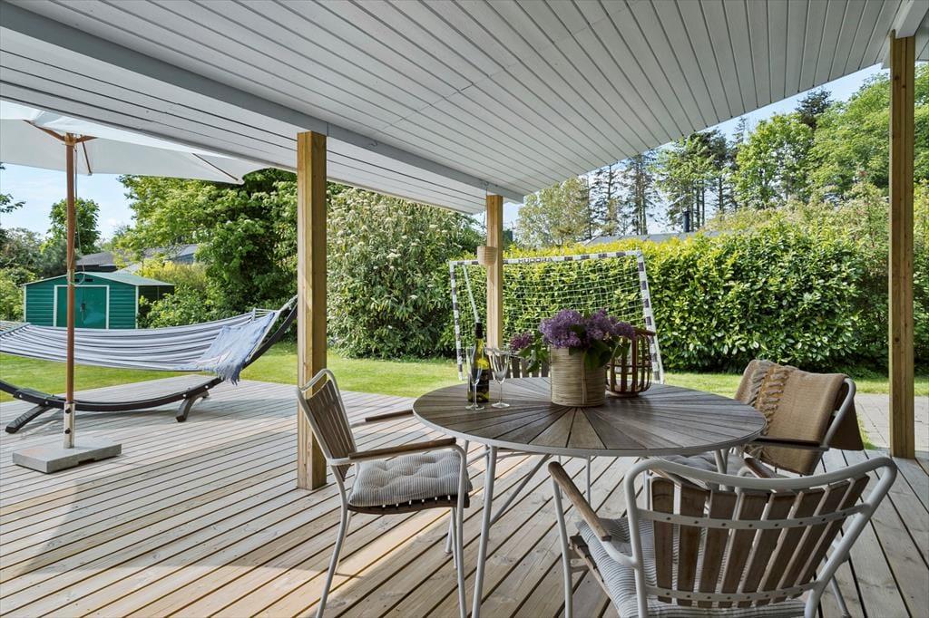Huset ligger på en ugeneret grund med stor fin græsplæne og mulighederne for at opholde sig ude under sit ophold er store. Her er fine havemøbler, parasol, hængekøje og liggestole. Det vil være oplagt at tilberede flere af dagens måltider på husets grill, og nyde dem husets terrasse.
