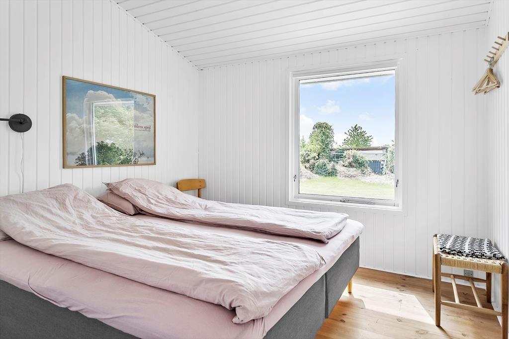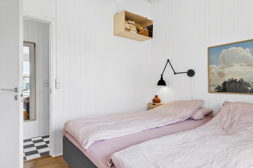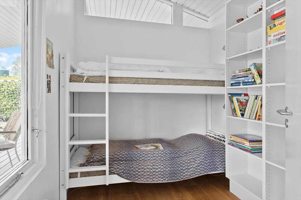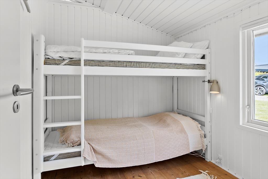 Sovepladserne er fordelt på tre rum – et med dobbeltseng og to soverum med fine køjesenge.