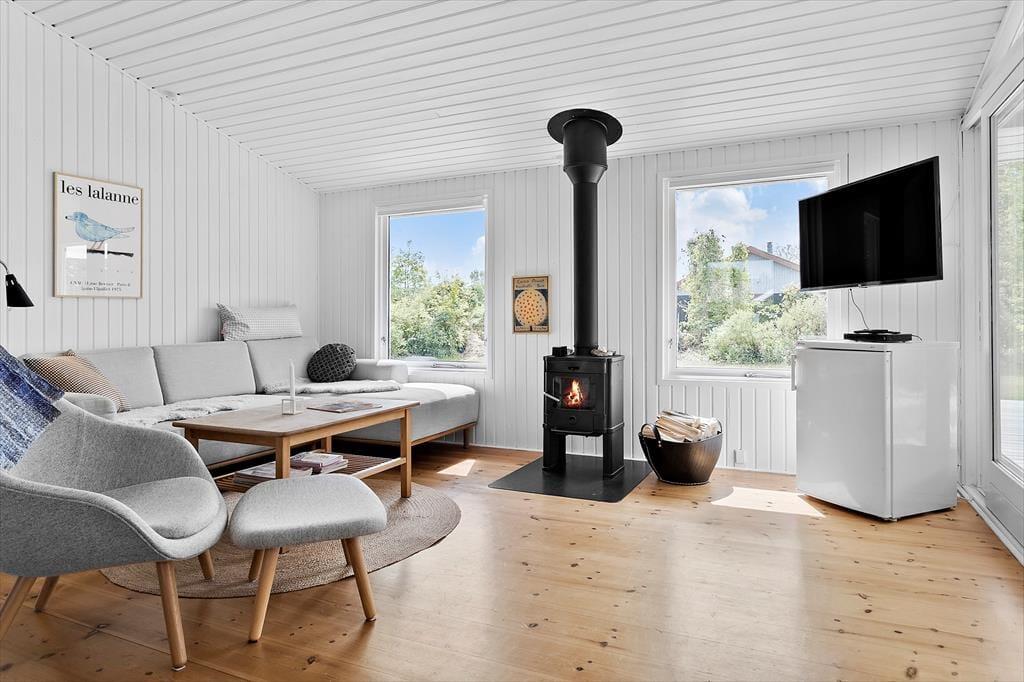 I direkte forbindelse med køkkenet, er der spiseplads og hyggelig sofagruppe, hvor I alle kan samles efter en god dag på stranden og hygge jer med brætspil, puslespil, snak og måske se en film på det store TV, hvor der er mulighed for at streame eget abonnement via huset Chromecast. Her er desuden Tv-pakke med danske, tyske, svenske og norske kanaler.