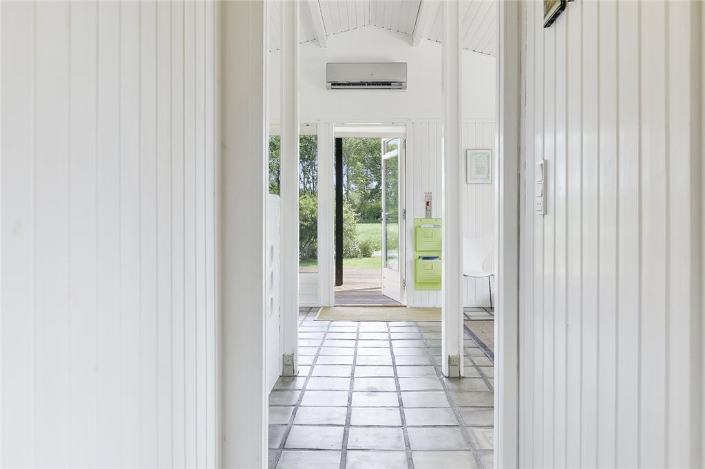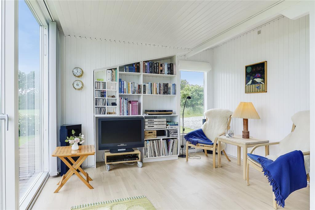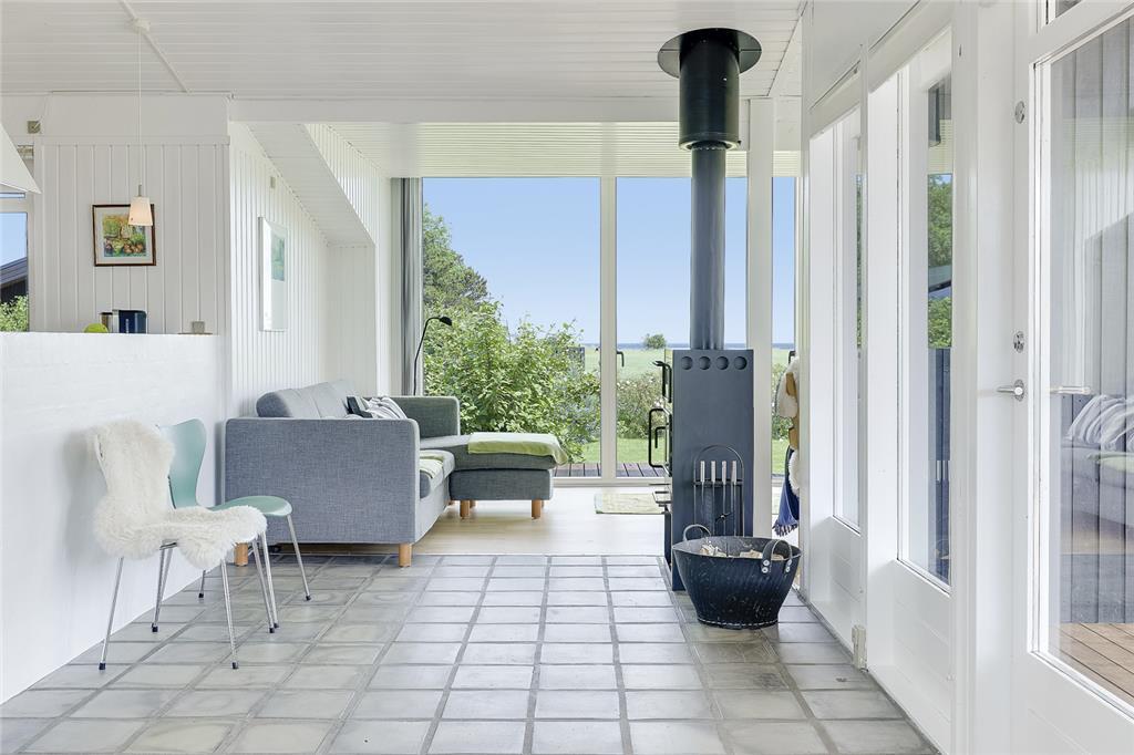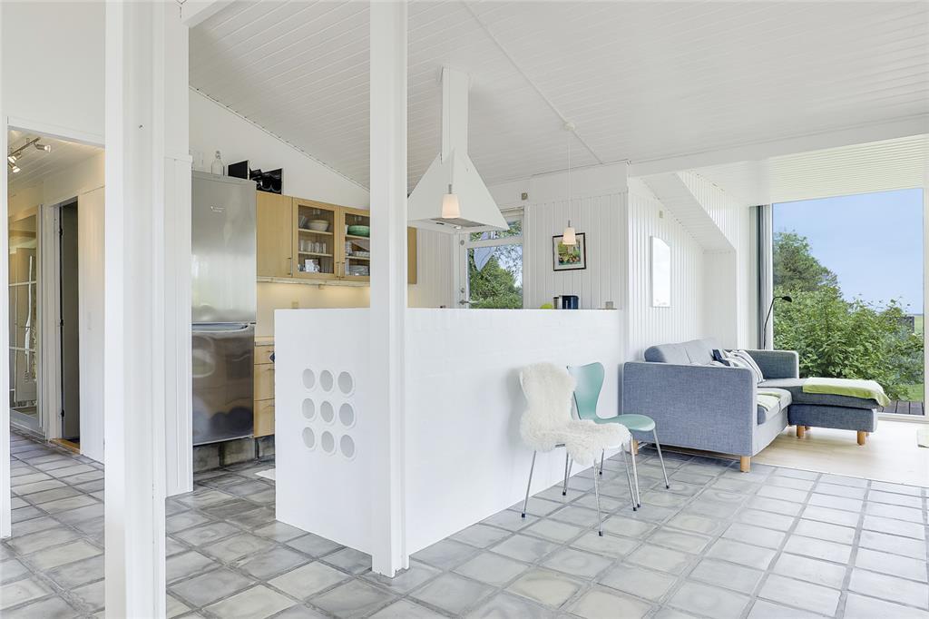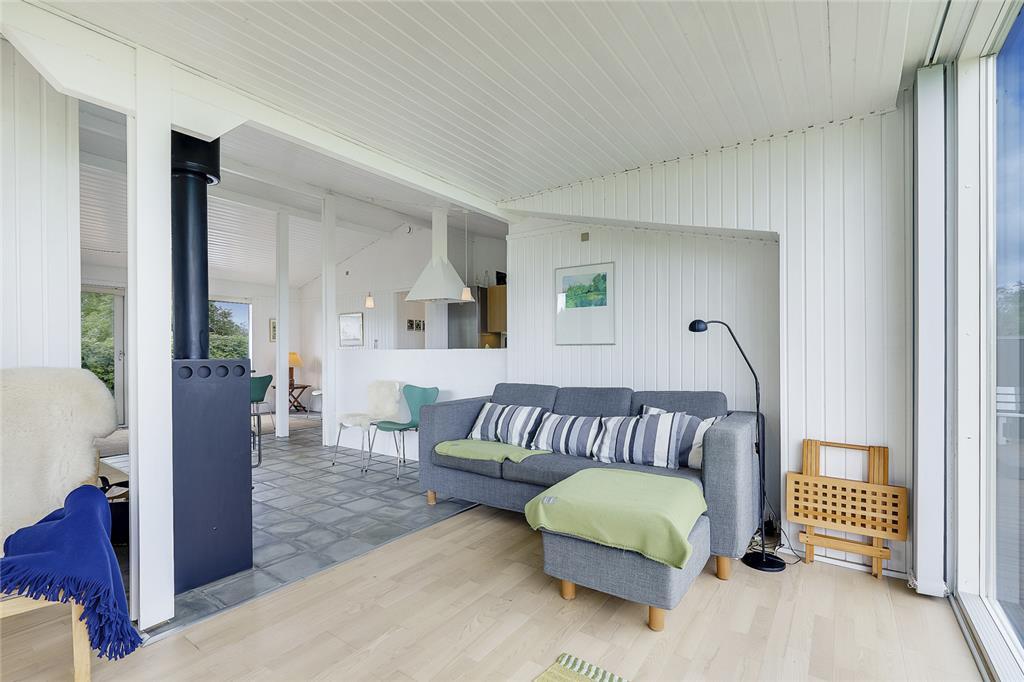 Når du træder indenfor, indhylles du straks af en lys og varm atmosfære, hvor sommerhusets sjæl folder sig ud i hver en krog. Stuen inviterer til hyggelige stunder med bløde sofahjørner og den knitrende brændeovn, som spreder både varme og stemning på de kølige aftener. Køkkenet er en indbydende oase, hvor du kan trylle små og store måltider frem – måske inspireret af sæsonens lokale delikatesser? Soveværelserne indhyller jer i ro og afslapning, og hver morgen vågner I opfriskede og klar til endnu en dag fuld af ferieglæde.
