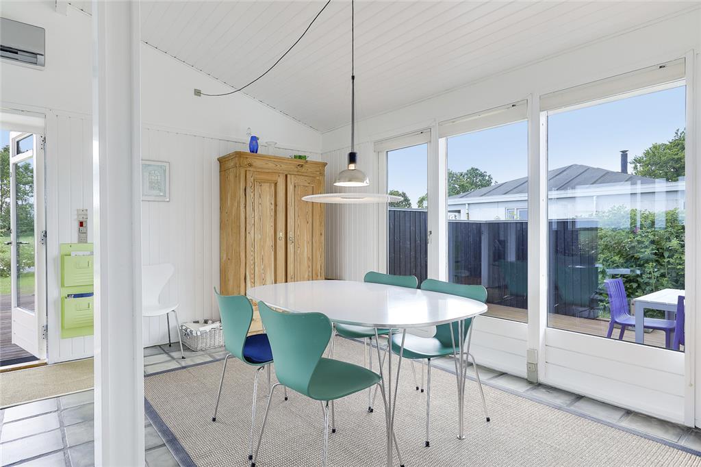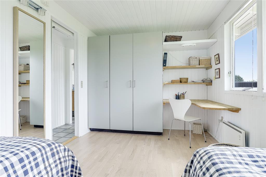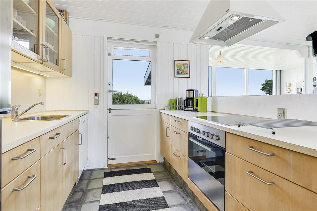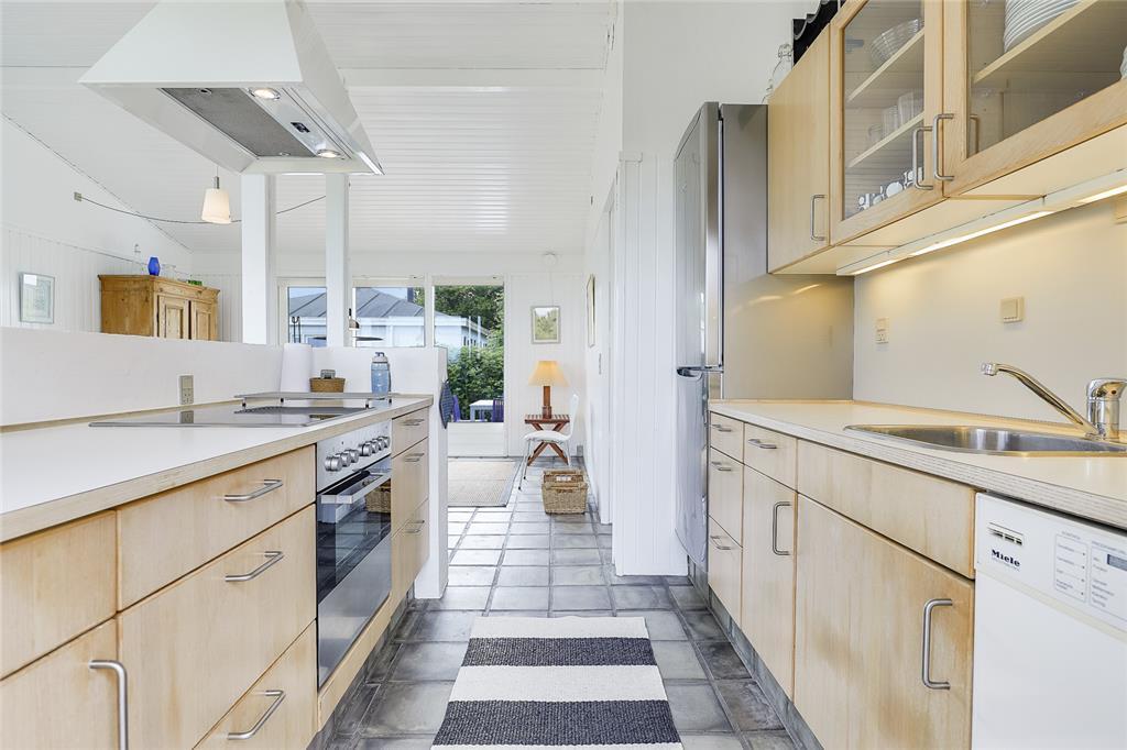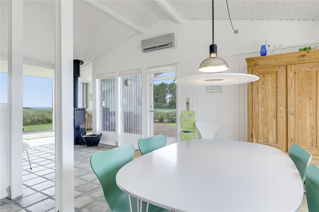 Når du træder indenfor, indhylles du straks af en lys og varm atmosfære, hvor sommerhusets sjæl folder sig ud i hver en krog. Stuen inviterer til hyggelige stunder med bløde sofahjørner og den knitrende brændeovn, som spreder både varme og stemning på de kølige aftener. Køkkenet er en indbydende oase, hvor du kan trylle små og store måltider frem – måske inspireret af sæsonens lokale delikatesser? Soveværelserne indhyller jer i ro og afslapning, og hver morgen vågner I opfriskede og klar til endnu en dag fuld af ferieglæde.