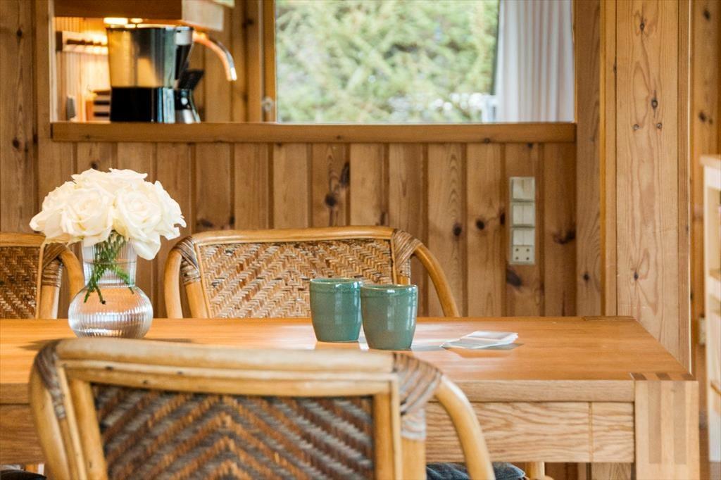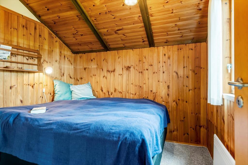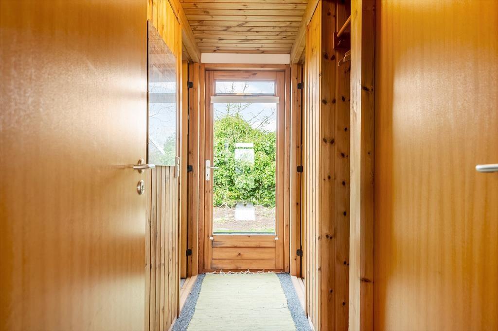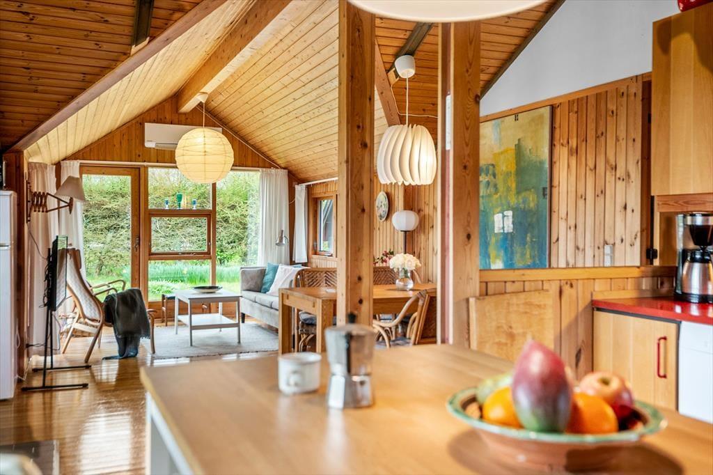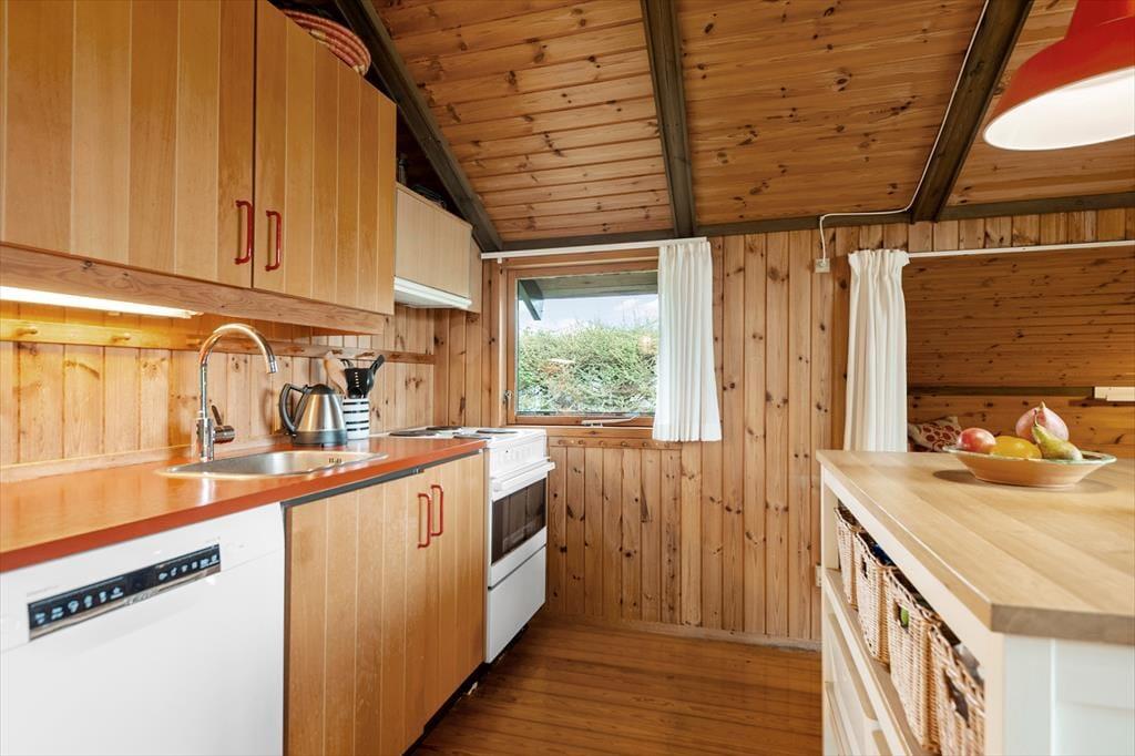 Husets indre byder på en autentisk og hjemlig atmosfære med klassiske sommerhusmaterialer og varme detaljer. I det åbne opholdsrum er der god plads til fællesstunder – her kan du samle familien til måltider omkring spisebordet, spille et brætspil eller blot nyde stilheden. I hjørnet står en alkove, der indbyder til stille stunder med en kop te og en god bog – eller måske en lur i skyggen midt på dagen.