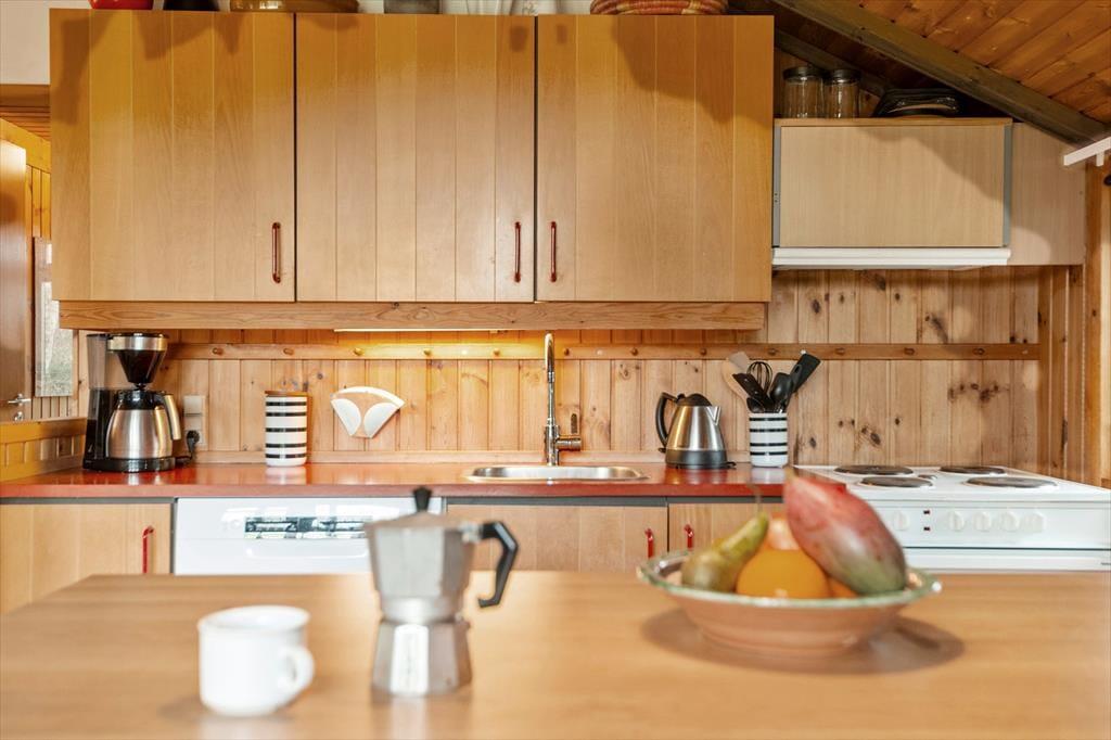 Det åbne køkken gør det let at være sammen, mens maden bliver lavet, og soveværelserne er enkelt indrettede, så du kan finde ro og hvile, når dagen går på hæld. Indretningen er ikke ny, men der er tænkt over detaljerne, og du vil hurtigt føle dig hjemme i de trygge og uformelle omgivelser.