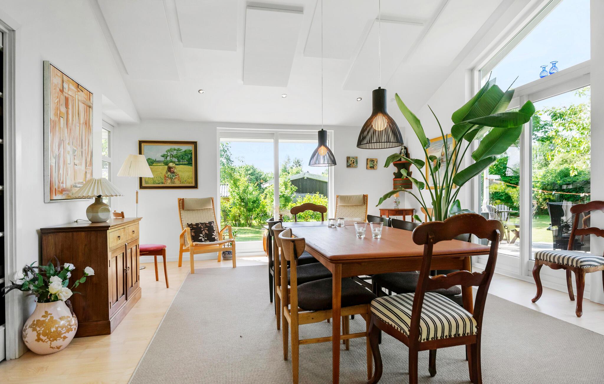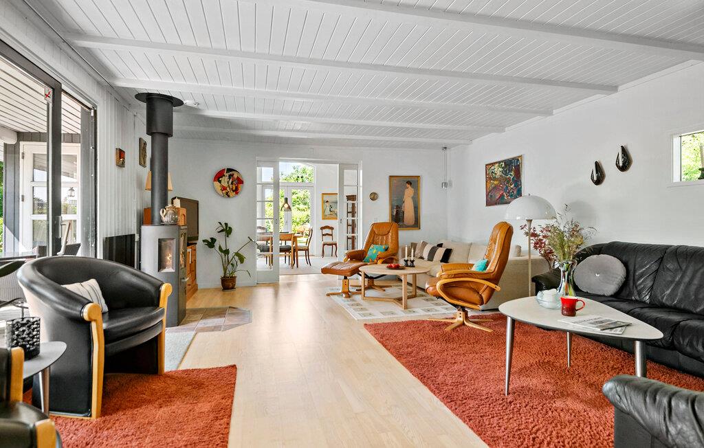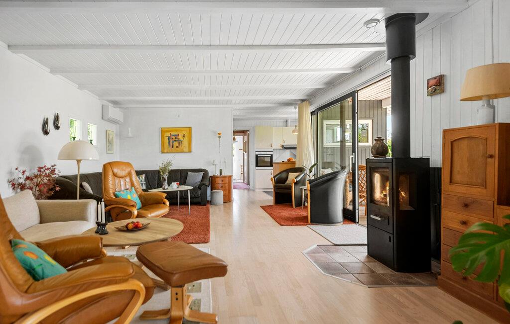 Velkommen i dette lyse og rummelige feriehus, hvor der venter jer en afslappende tid med jeres nærmeste. Føl jer hjemme, mens I nyder fælles måltider i de smukt indrettede rum, arrangerer hyggelige spilleaftener eller lytter til den sagte knitren fra brændeovnen med en god bog i hånden.