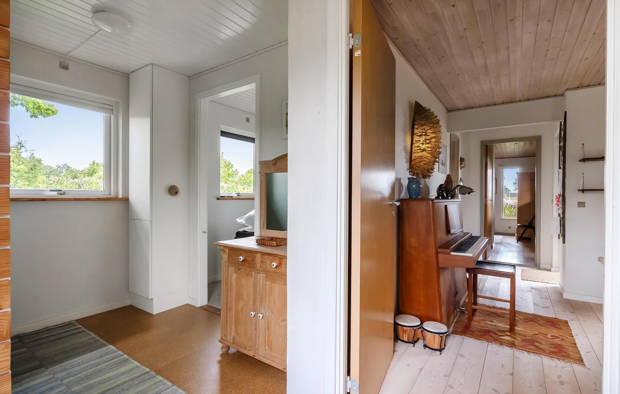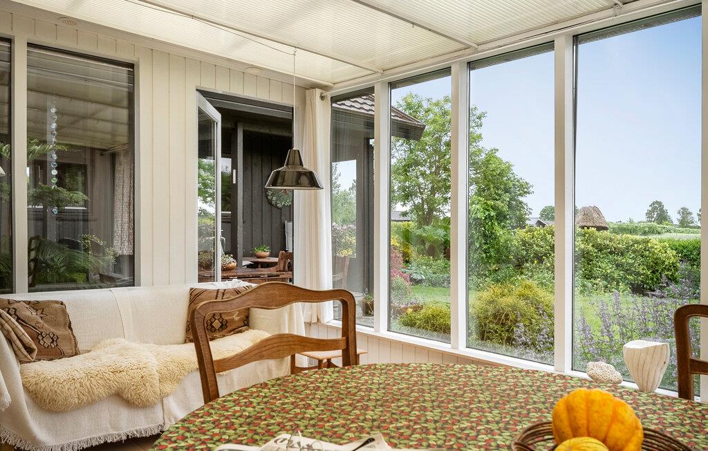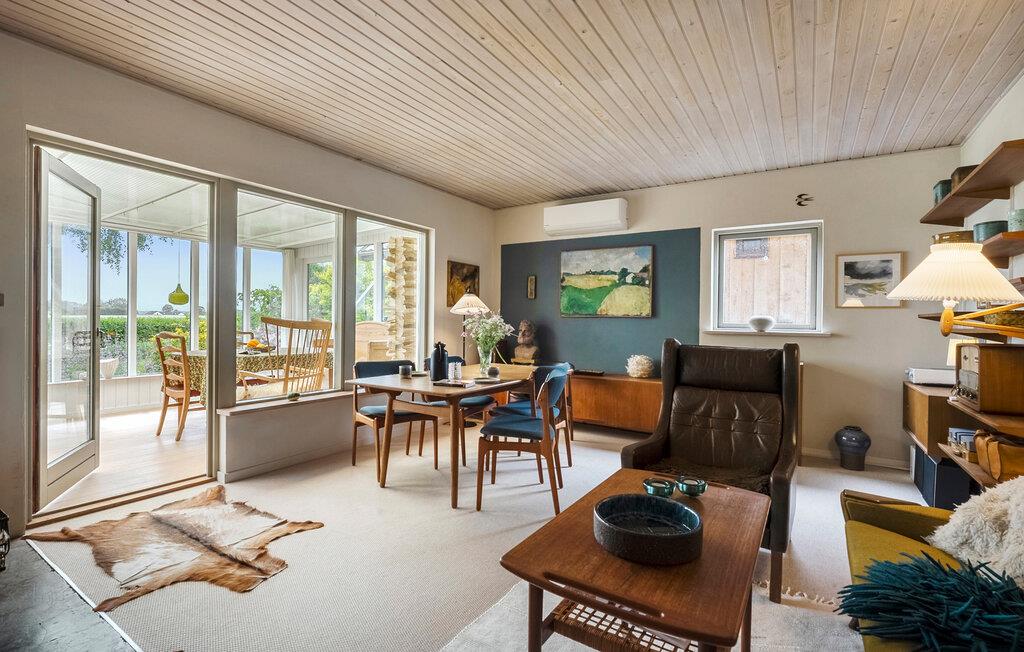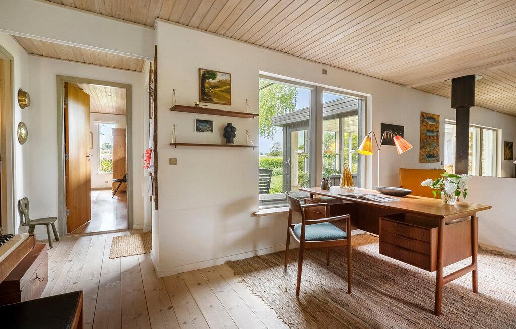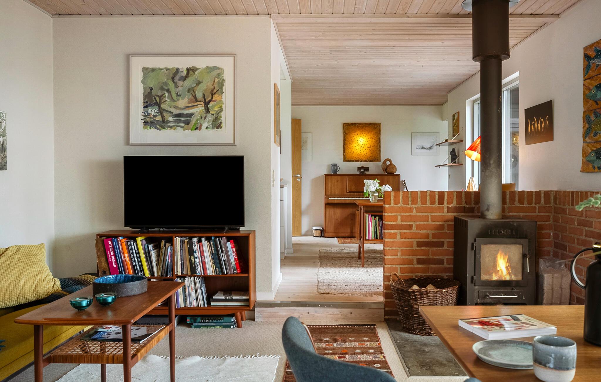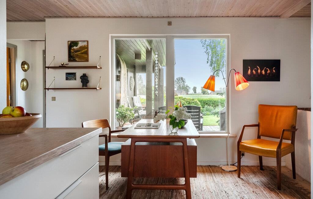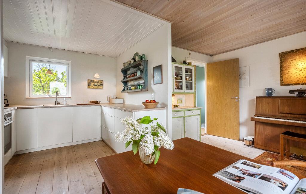 Nyd freden og roen, den raffinerede atmosfære og det smukke lys, der strømmer ind i værelserne gennem de store vinduer. Husets interiør kombinerer skandinavisk charme med moderne komfort. Slap af i den hyggelige opholdsstue med brændeovn, sofahjørne og TV. Den tilstødende udestue tilbyder et vidunderligt sted til fælles måltider eller en kop te med udsigt over haven. Brug skrivebordet til at læse eller skrive i fredfyldte omgivelser og nyd musik med venner. I det åbne køkken med smukke træmøbler finder I alt, hvad I behøver til madlavning. Lad den hjemlige atmosfære inspirere jer.