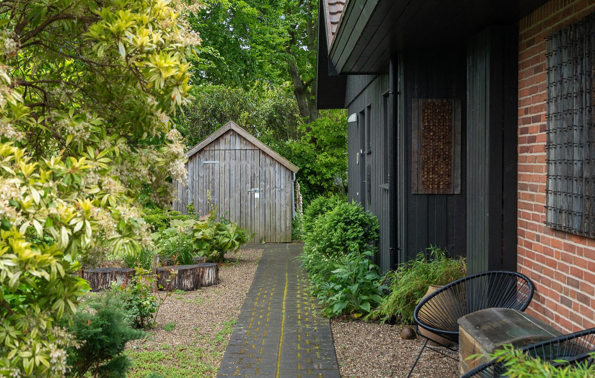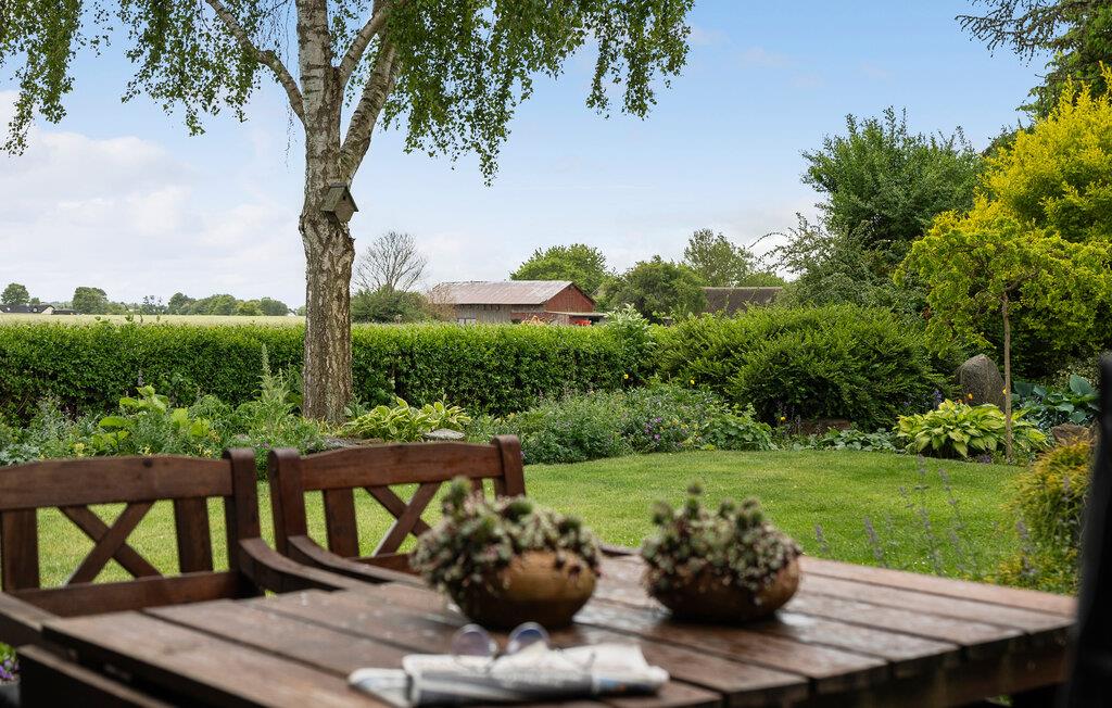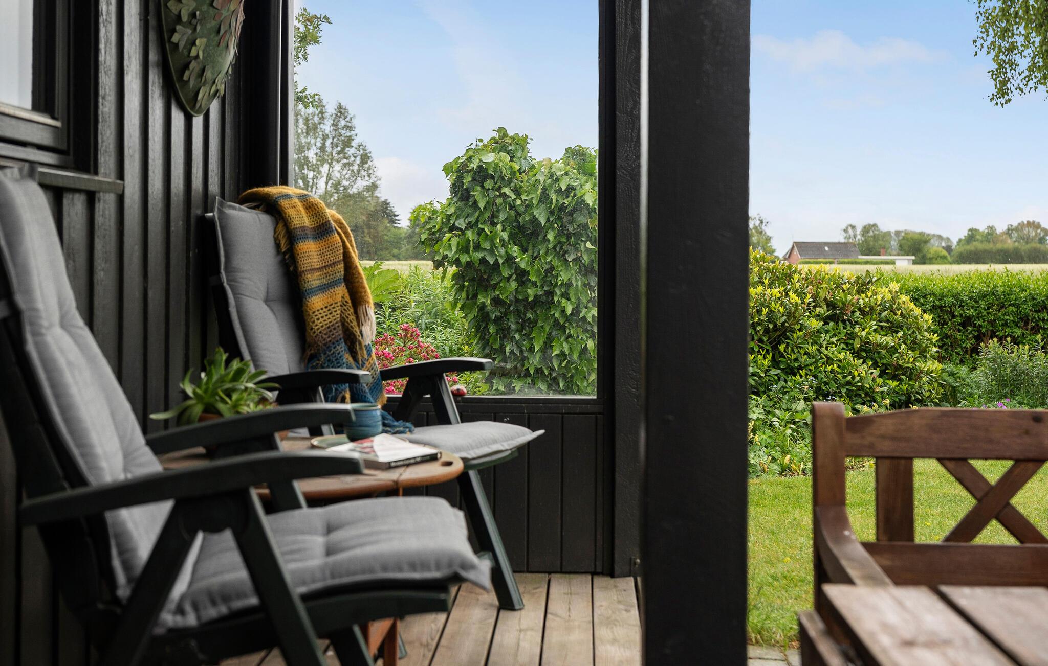 Træd ud på den overdækkede terrasse og nyd udsigten over den velholdte have med blomstrende buske og hække. Tag plads ved siddegruppen, nyd dagens måltider udendørs eller læn jer tilbage i en af ??de behagelige stole.