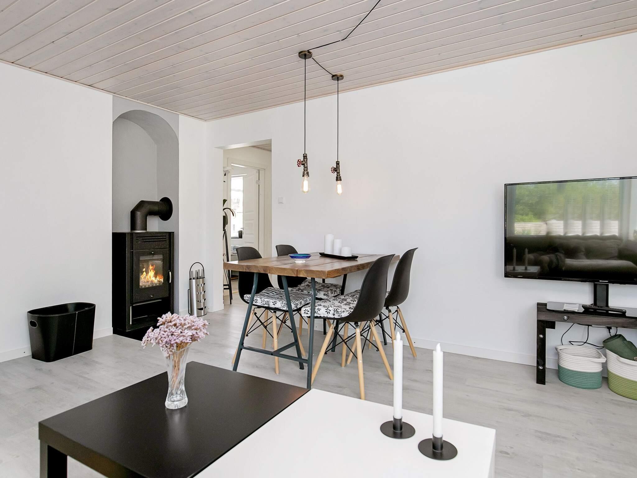 1 Opholdsstue: (1DO), brændeovn, radio, Chromecast, tv, høj stol