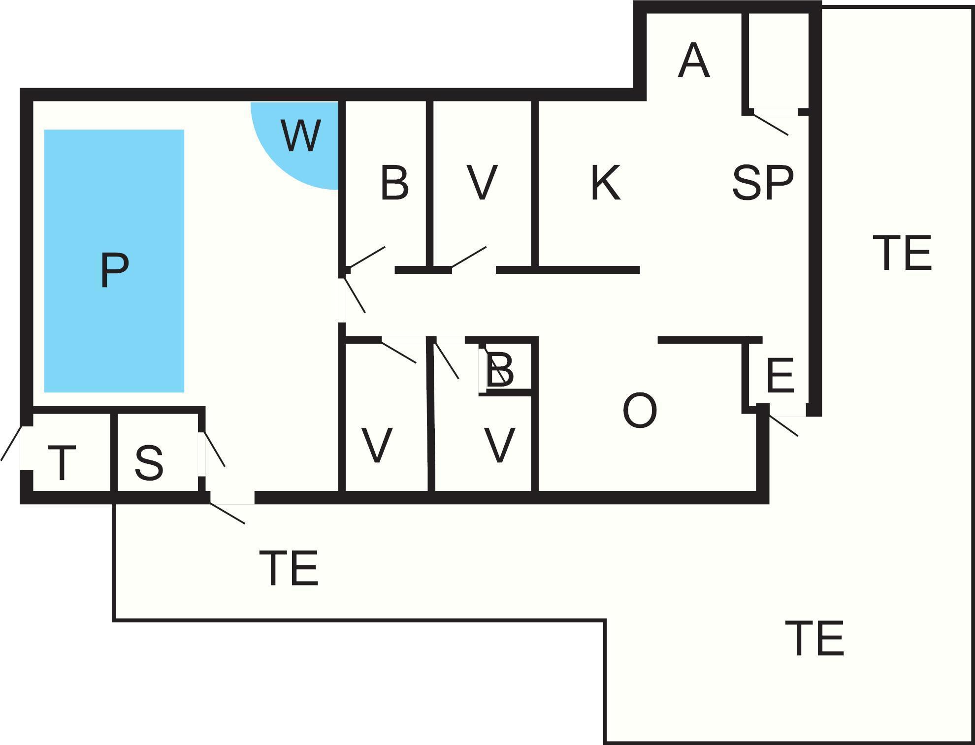 Dejligt stort poolrum med et bassin på 20 m2 og rutchebane. Til de små er der børnepool. De voksne vil måske foretrække en tur i spabadet eller et øjebliks fred og ro i den varme sauna. En sjov og skøn afdeling, som også gør huset velegnet til ferier udenfor højsæsonen.
