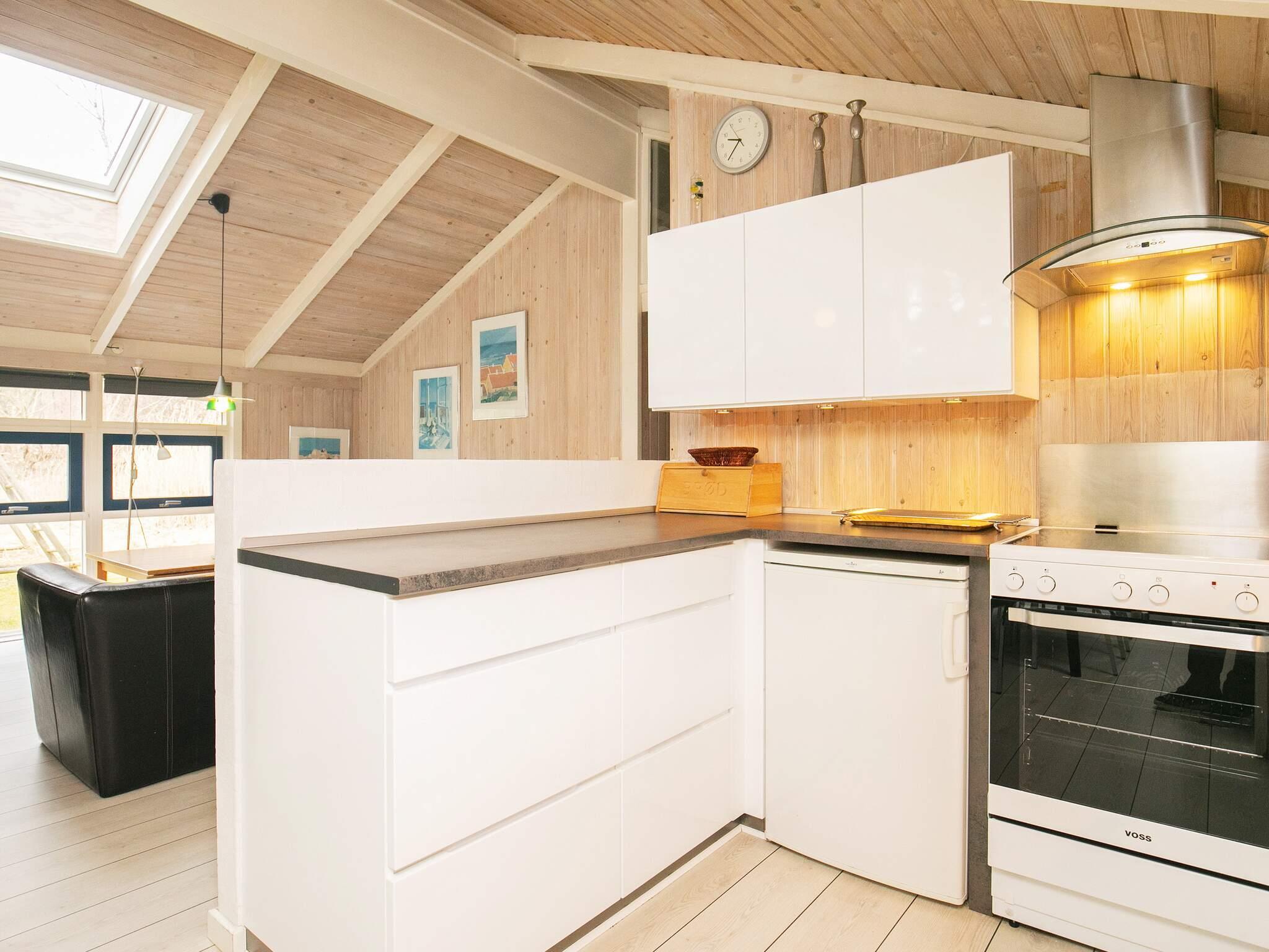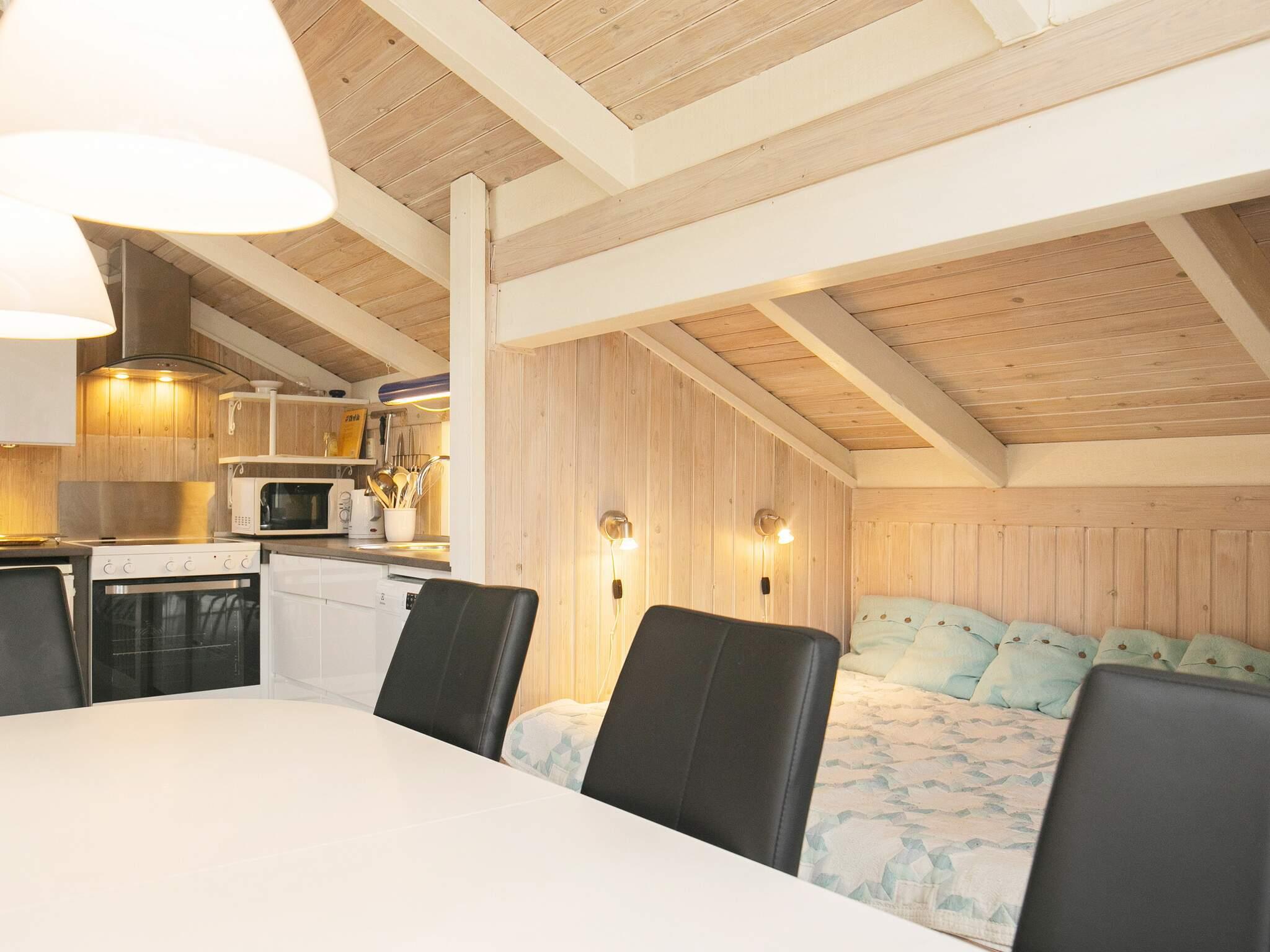Sommerhuset er moderne indrettet med gode og stilrene møbler og masser af lysindfald fra de store vinduer. Det store opholdsrum med åbent køkken, spiseafdeling og stue bliver hurtigt det centrale samlingspunkt, hvor familien kan samles om madlavning, brætspil og hyggelige stunder med ild i brændeovnen. Huset råder over tre værelser med gode senge og skabsplads samt en alkove.