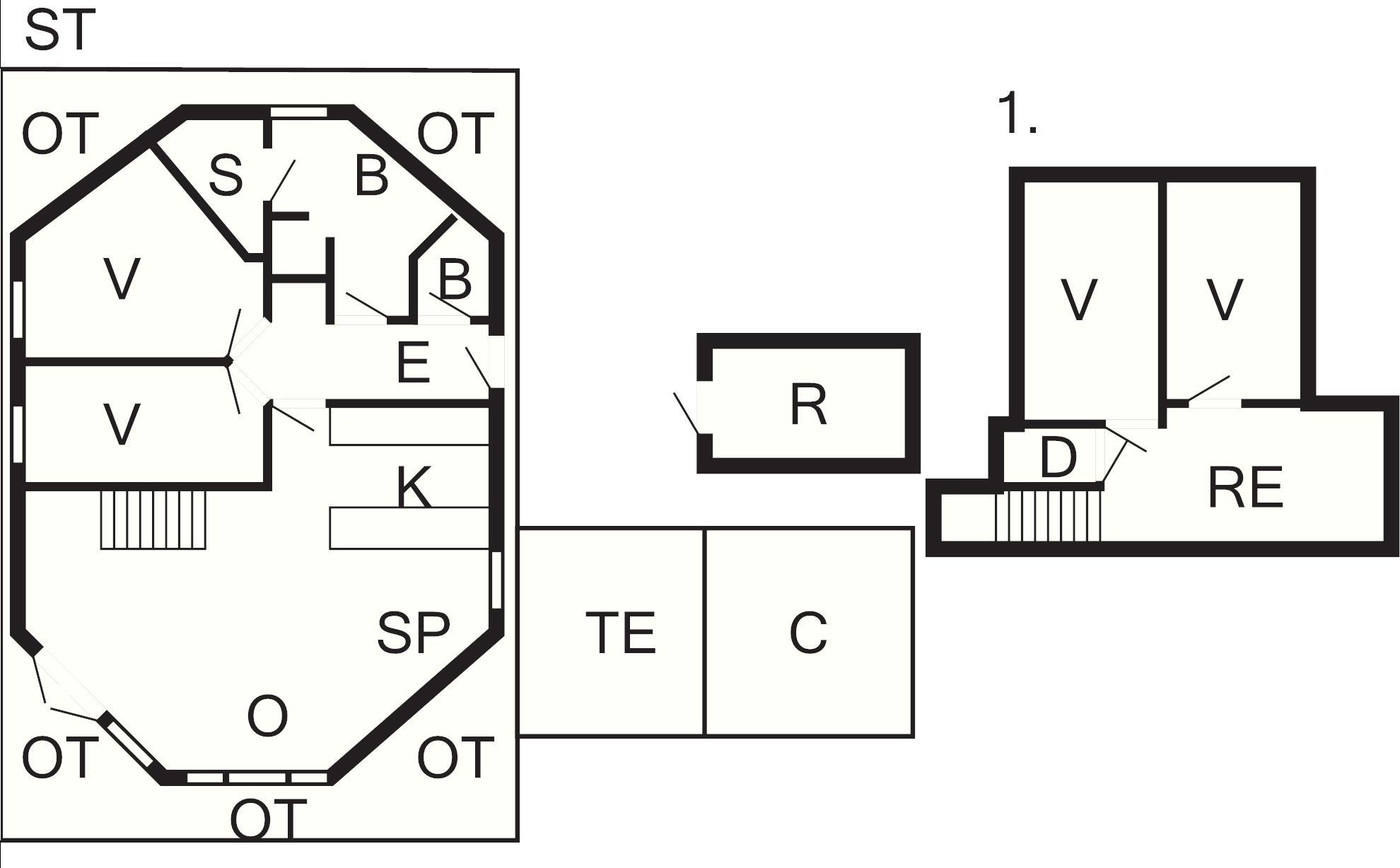 1 Opholdsstue: Brændeovn, radio, stereoanlæg med cd, tv, kabel-tv, høj stol