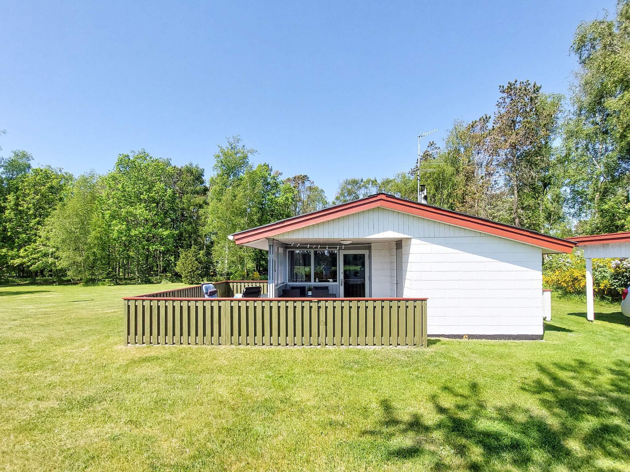 Sommerhus beliggende i naturskønne omgivelser på en grund med stor græsplæne. Huset bliver løbende renoveret og er indrettet med to gode soveværelser og et badeværelse, åbent køkken med spiseplads og stue med brændeovn samt et mindre bryggers med vaskemaskine og tørretumbler. Fra stuen er der adgang til overdækket terrasse, hvor I kan nyde roen og naturen. Der er gynge.
