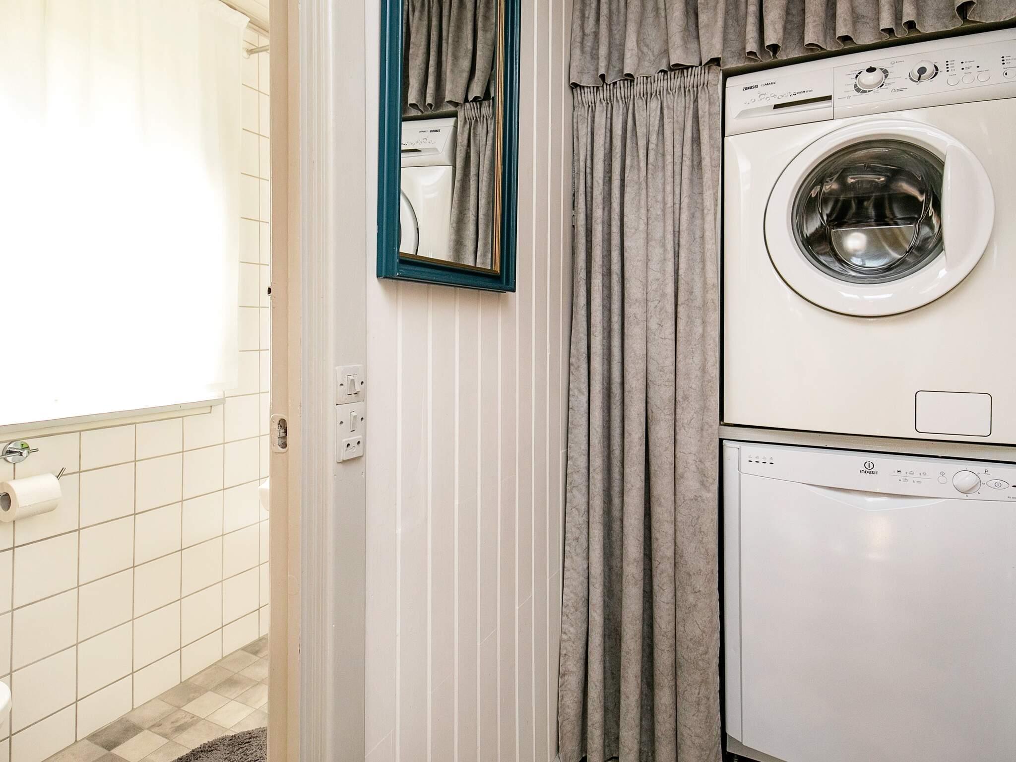 Køkken: El-komfur, køle-frys, mikroovn, emhætte, kaffemaskine, opvaskemask., vaskemask., tørretumbler