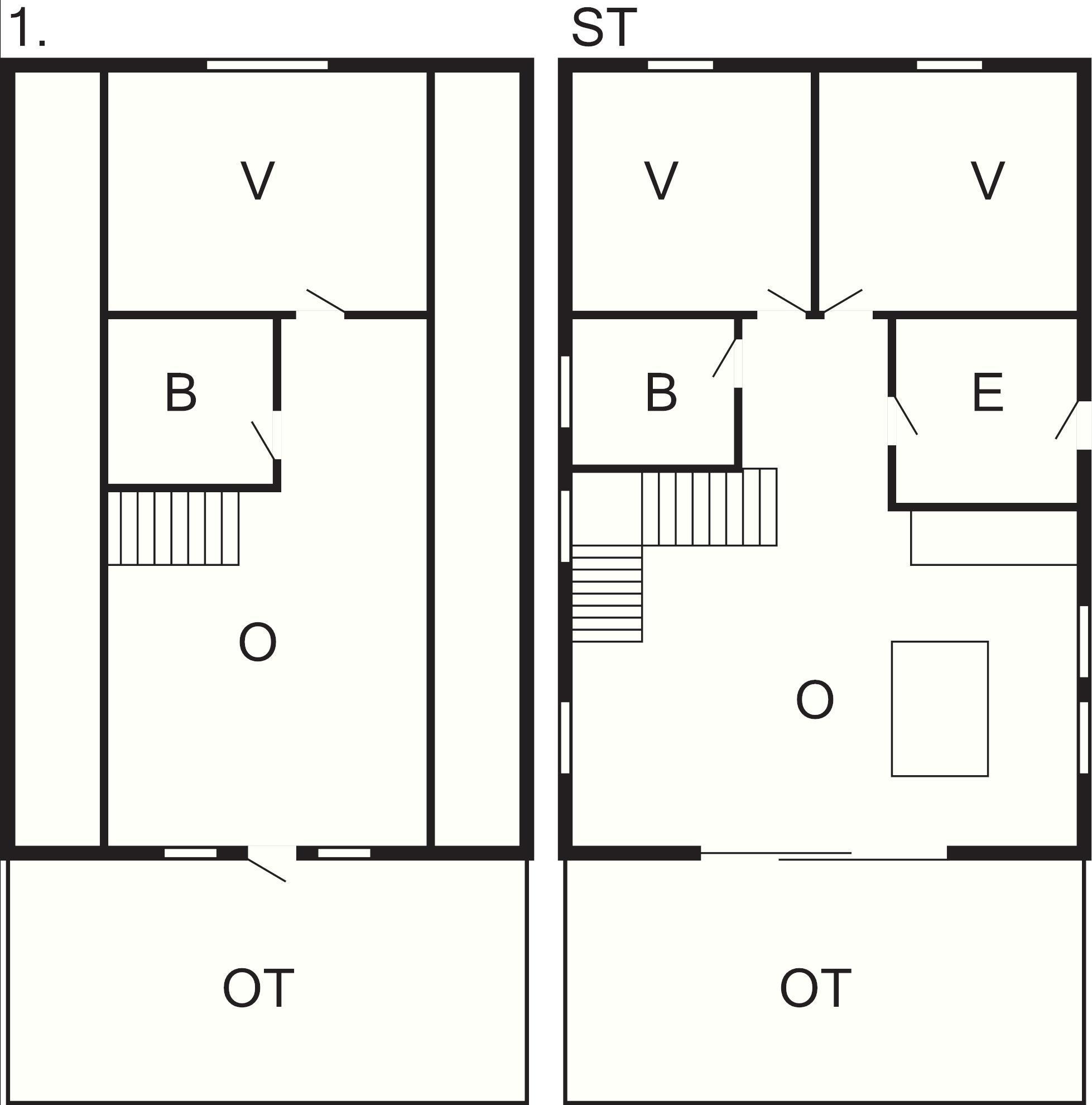Huset har tre soveværelser, to i stueetagen, sammen med en rummelig entré, et fuldt udstyret køkken og spiseplads samt et moderne badeværelse. Det åbne køkken og spiseplads giver en perfekt ramme om familiemåltider og hyggelige sammenkomster. Ovenpå byder den lyse loftsstue på panoramaudsigt over bugten, et tredje soveværelse og et andet badeværelse, hvilket skaber et fleksibelt rum, der er ideelt for familier eller små grupper.