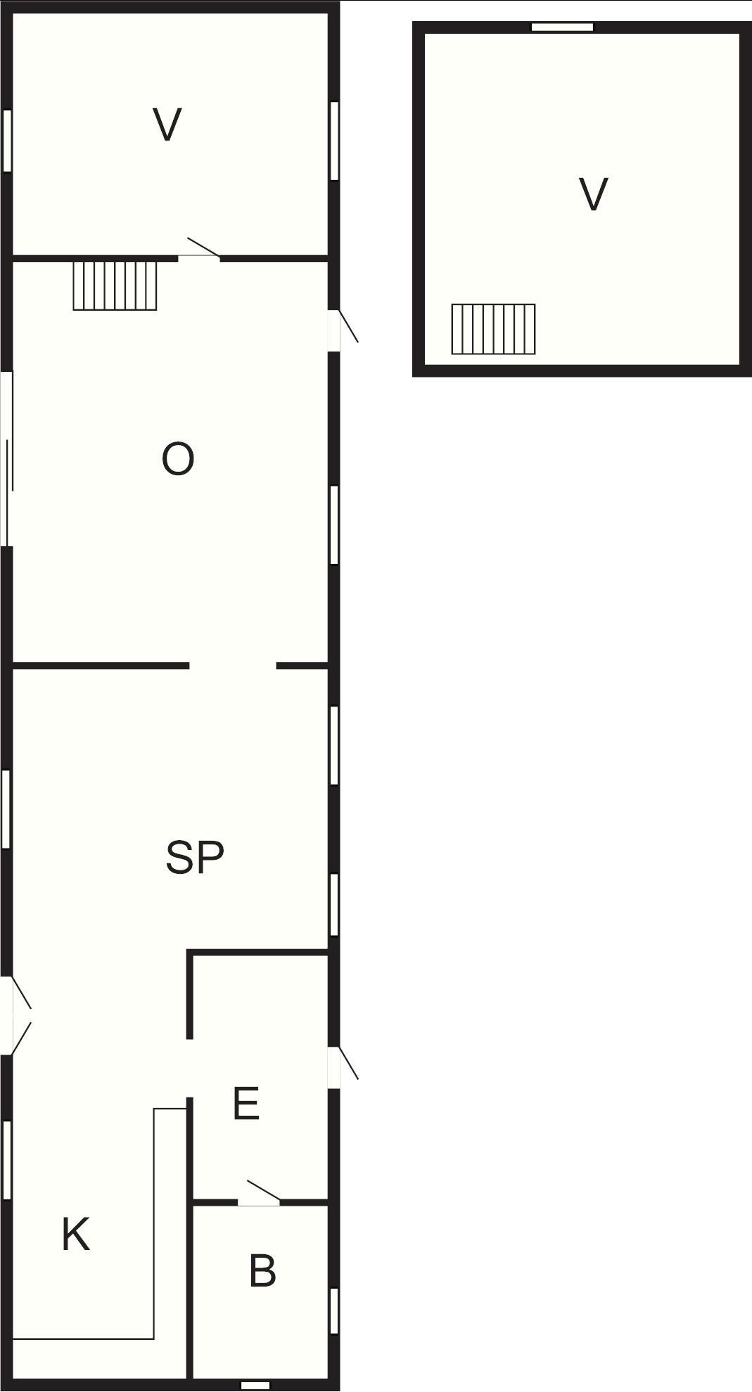 Stort soveværelse i stueetagen med to senge. Ovenpå på første sal er der yderligere fire senge i det ene soveværelse. Det separate anneks rummer en fryser, vaskemaskine, tørretumbler og tøjhest.