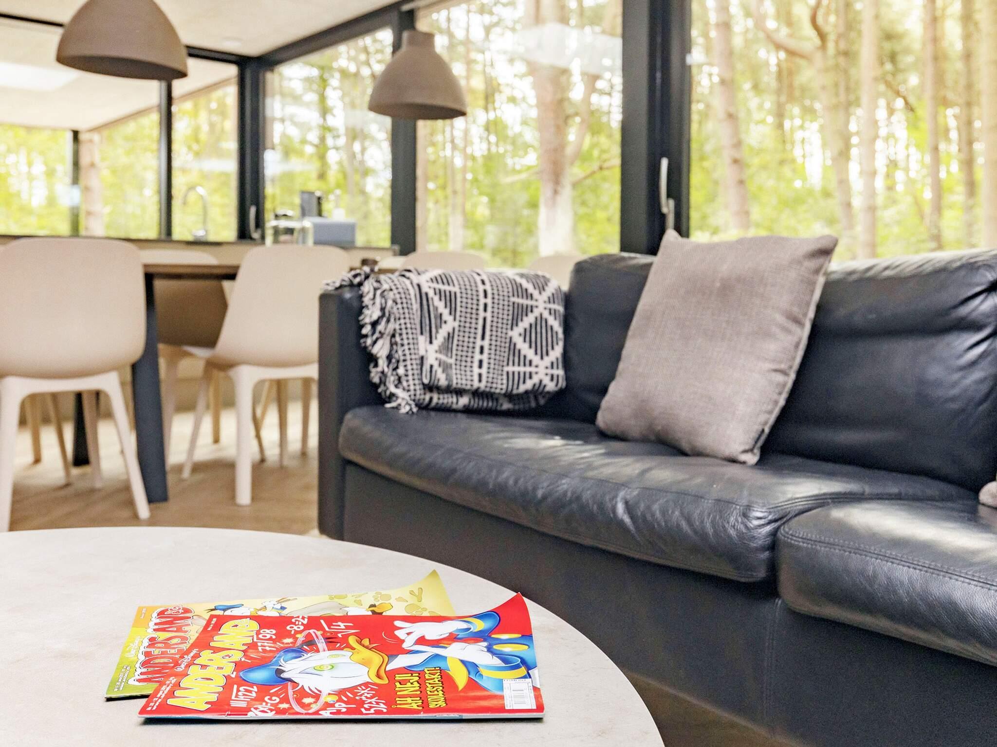 Hjertet i sommerhuset er en stor åben stue med god akustik i forbindelse med det veludstyrede køkken. Der er plads til, at alle kan mødes og hygge sig med madlavning, måltider, spil mv.