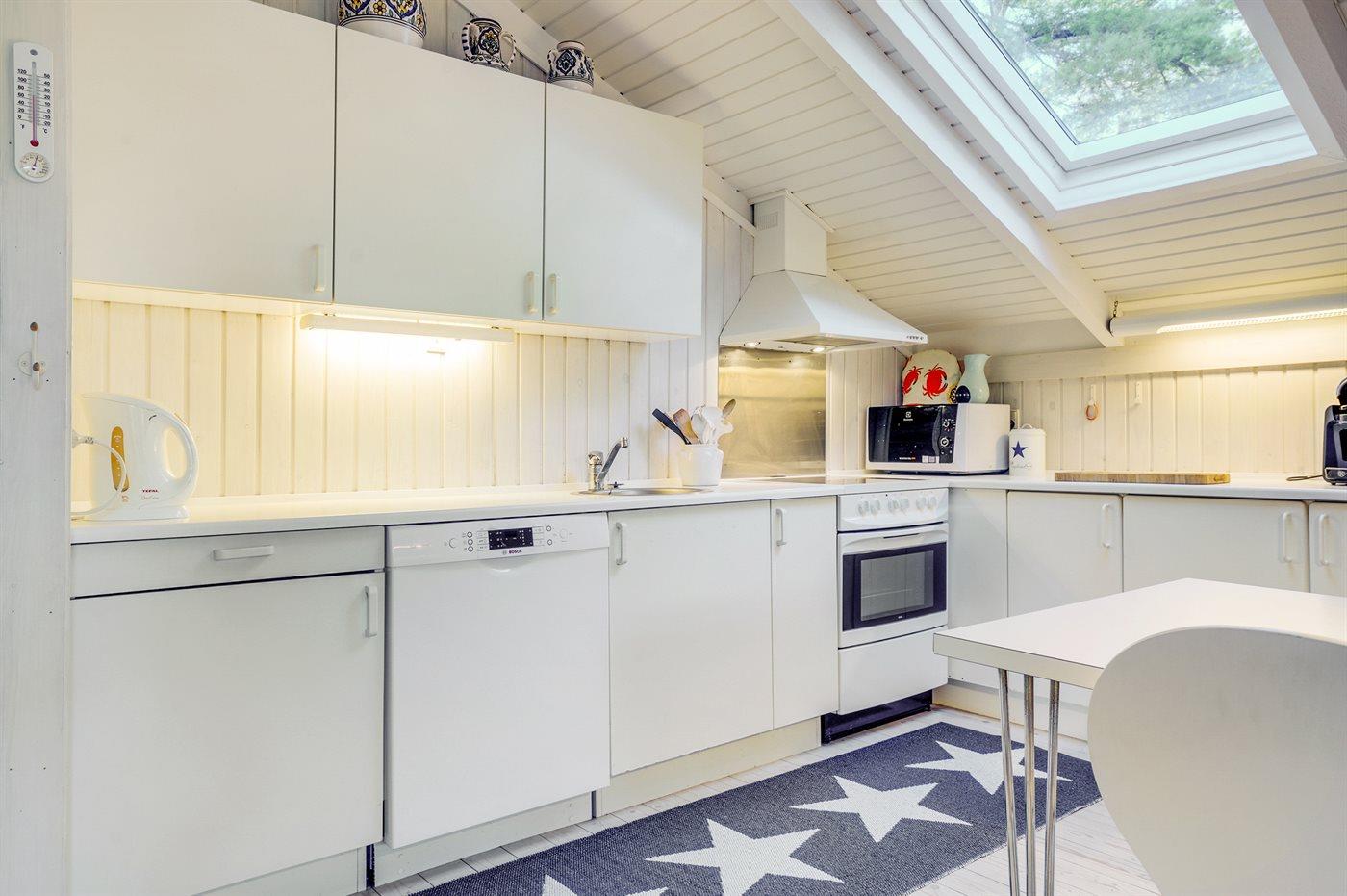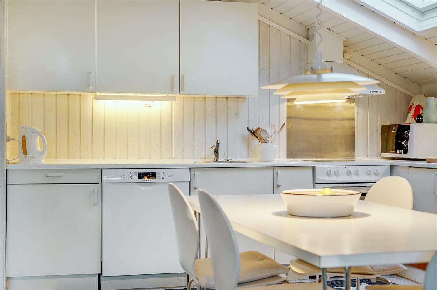 Køkkenet er udstyret med 1 køleskab. Der er 4 keramiske kogeplader, varmluftovn, mikrobølgeovn samt opvaskemaskine.