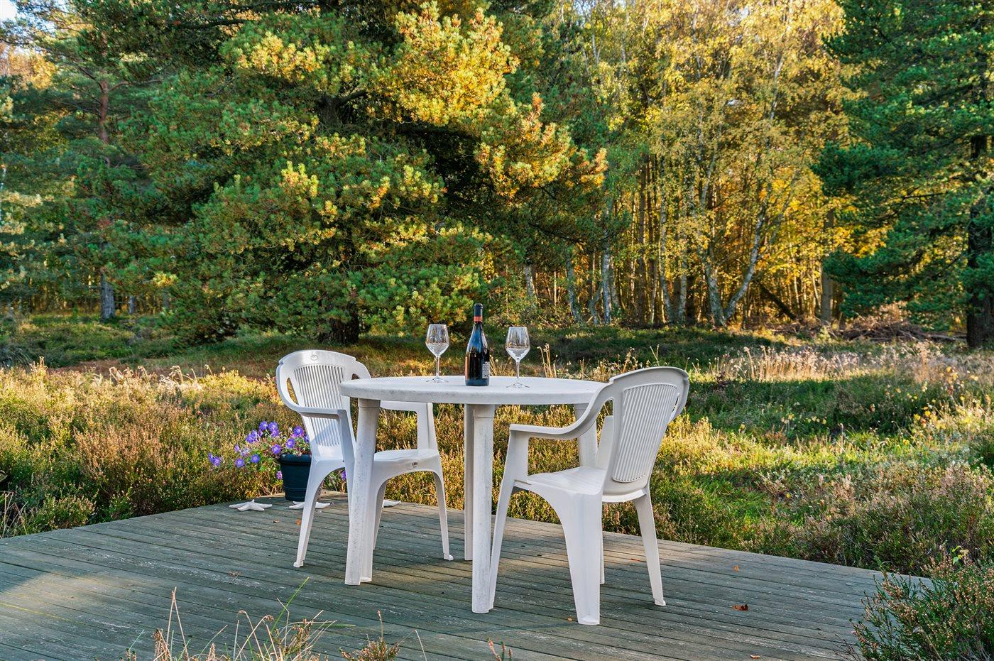 Hyggeligt feriehus på Læsø med stor terrasse, naturgrund og kort afstand til havet.