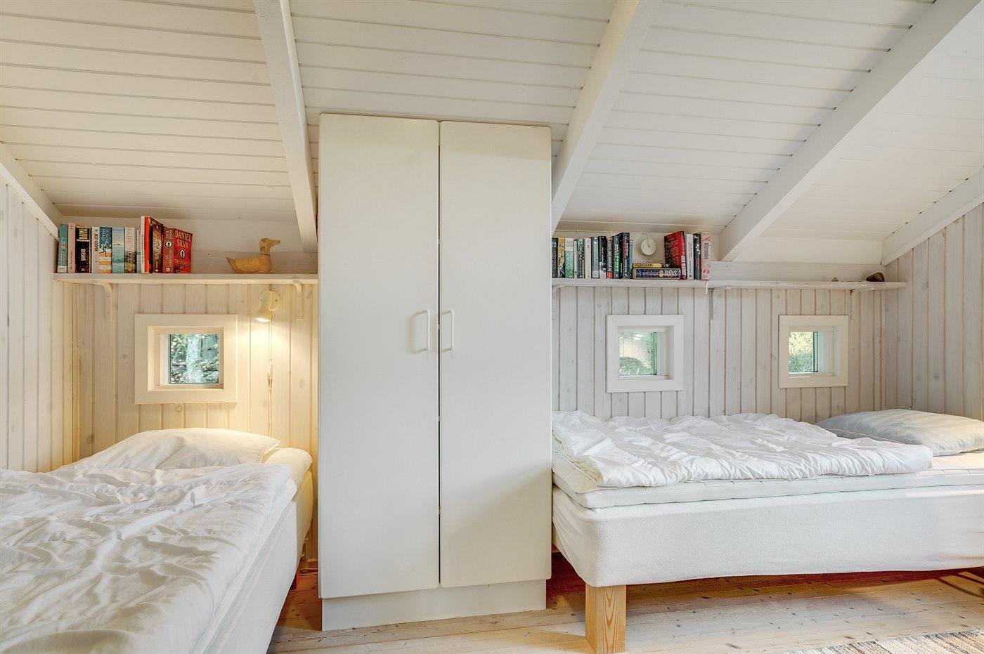 Der er i alt 3 soveværelser. Sovepladserne fordeler sig på: 2 sovepladser i dobbeltseng. 3 sovepladser i enkeltsenge.1 soveplads i køjeseng.