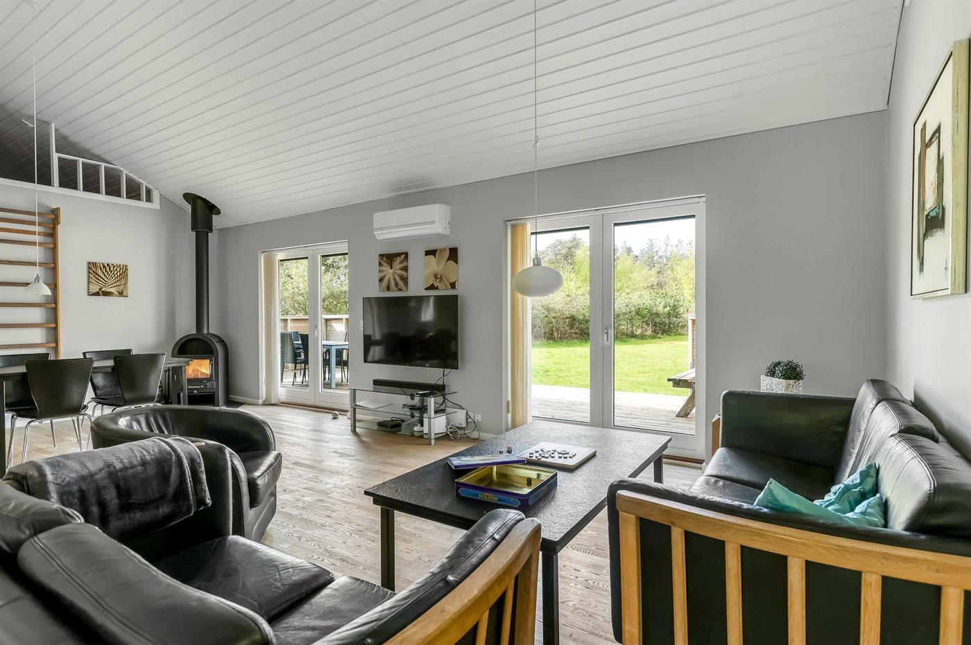 Sommerhuset egner sig til 9 personer. Ferieboligen er på 112 m² og er bygget i 2009. Det er tilladt at medbringe 1 husdyr. Ferieboligen har vaskemaskine. Frysekapacitet på 36 liter. Der er desuden brændeovn. Til de små er der 1 stk. barnestol.
