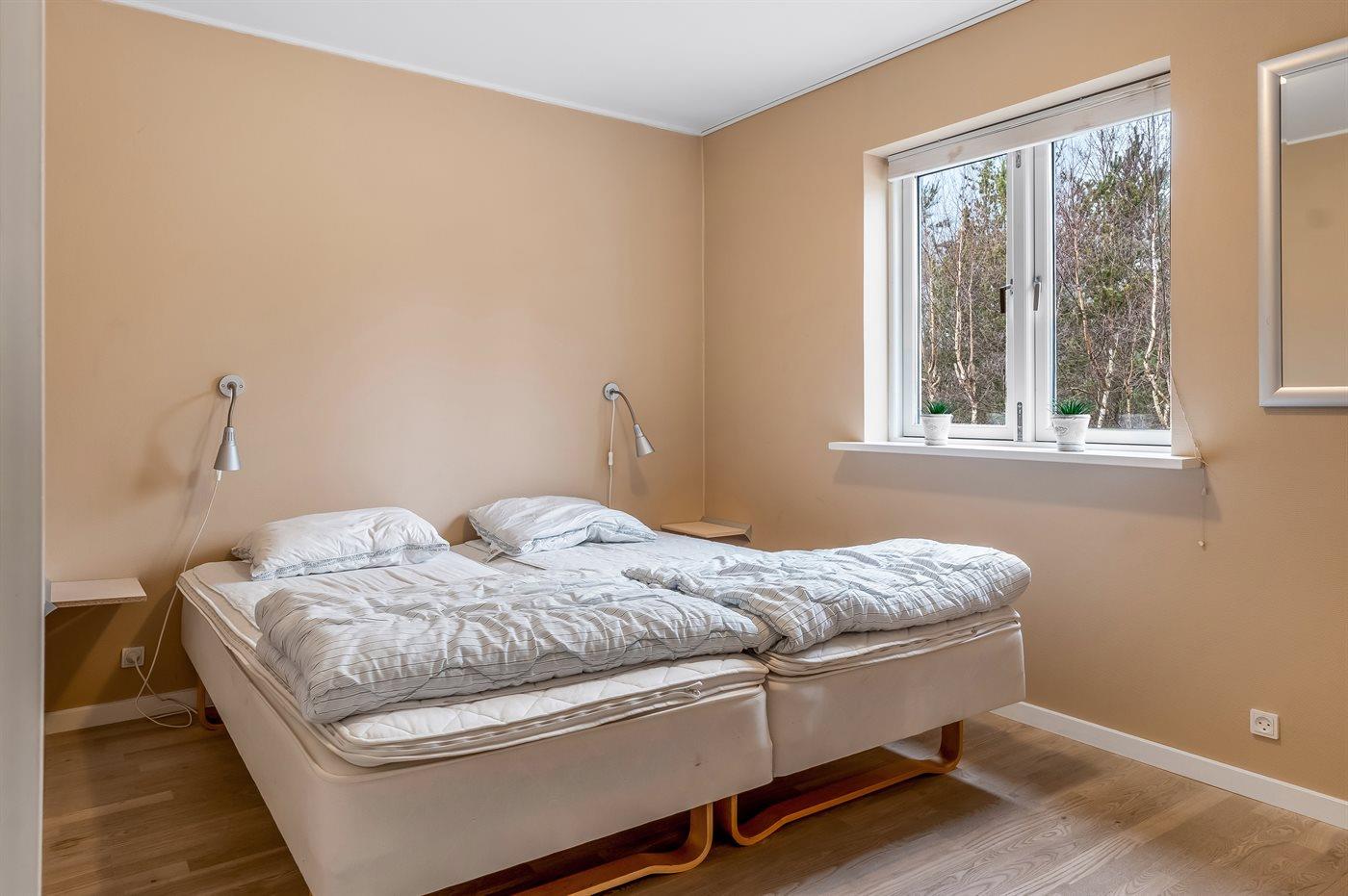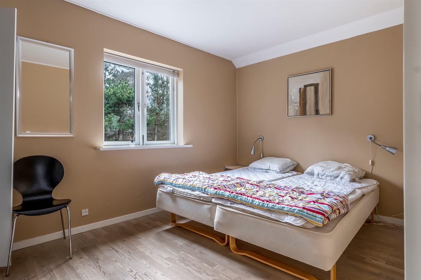 Der er i alt 3 soveværelser. Sovepladserne fordeler sig på: 6 sovepladser i dobbeltsenge. 3 sovepladser på madrasser. 3 af disse sovepladser befinder sig på husets hems.