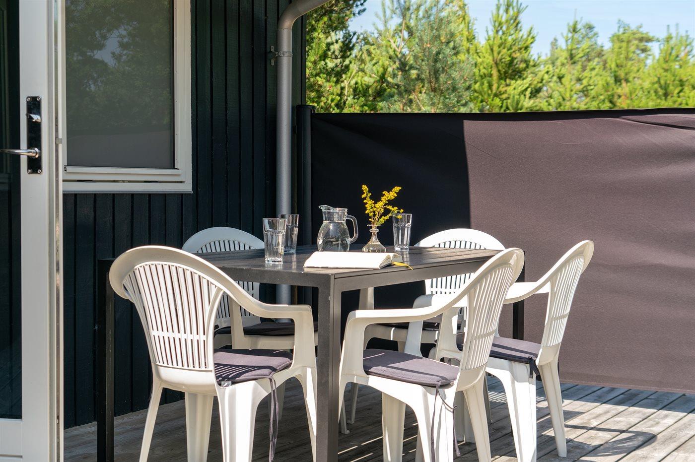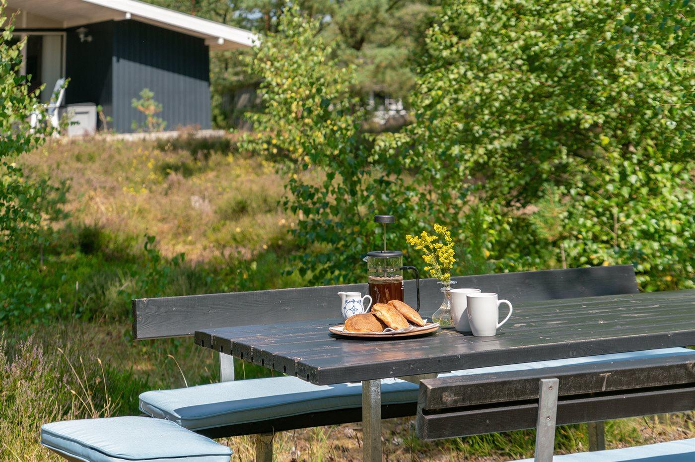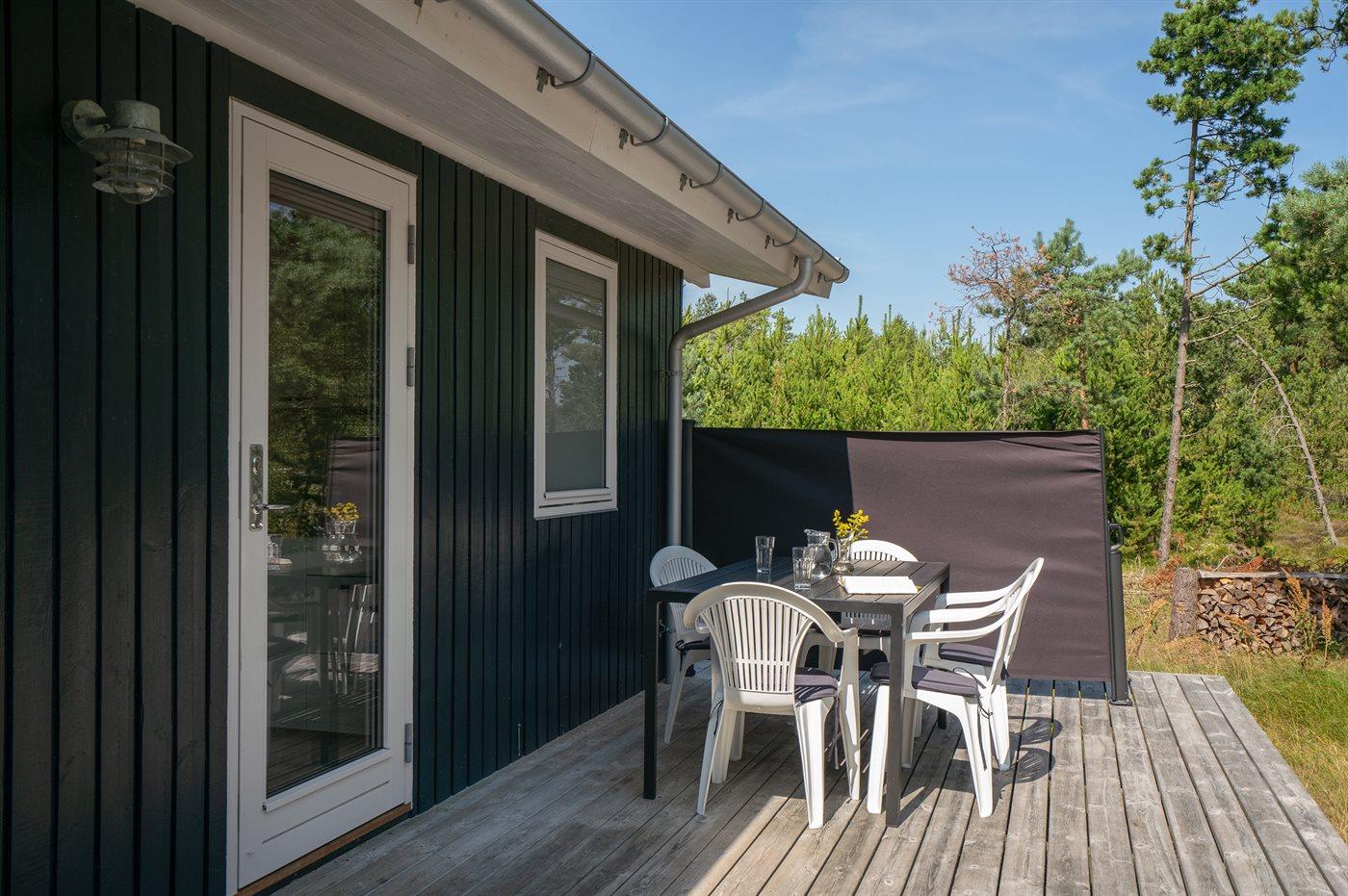 Ferieboligen er beliggende på en 5090 m² stor naturgrund. Der er 600 m til havet. Nærmeste forretning er beliggende i en afstand af 900 m. Der er en golfbane i en afstand af 3500 m. Til ferieboligen hører 70 m² terrasseareal. Desuden er der 20 m² overdækket terrasse. Der er redskabsrum. Der findes ny Weber gasgrill. Parkering ved ferieboligen.