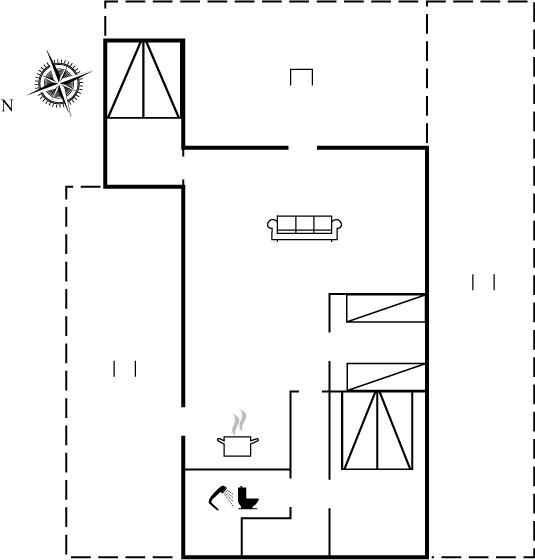 Der er i alt 3 soveværelser. Sovepladserne fordeler sig på: 4 sovepladser i dobbeltsenge. 2 sovepladser i enkeltsenge.