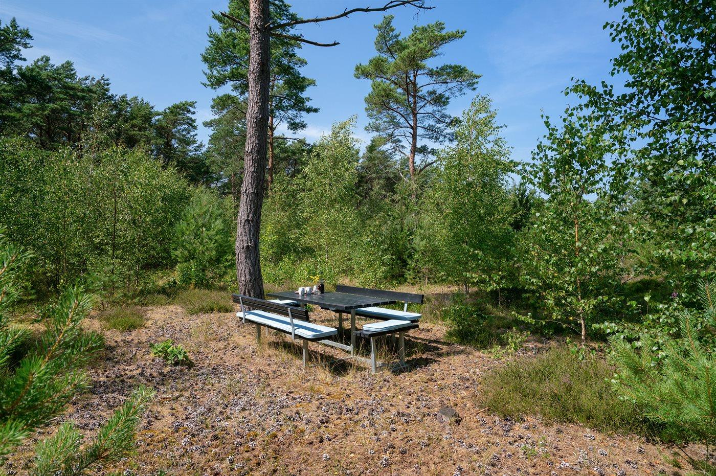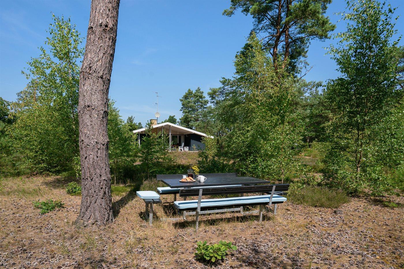 Et rummeligt og velindrettet sommerhus beliggende på skøn stor solrig lynggrund med spredt beplantning.