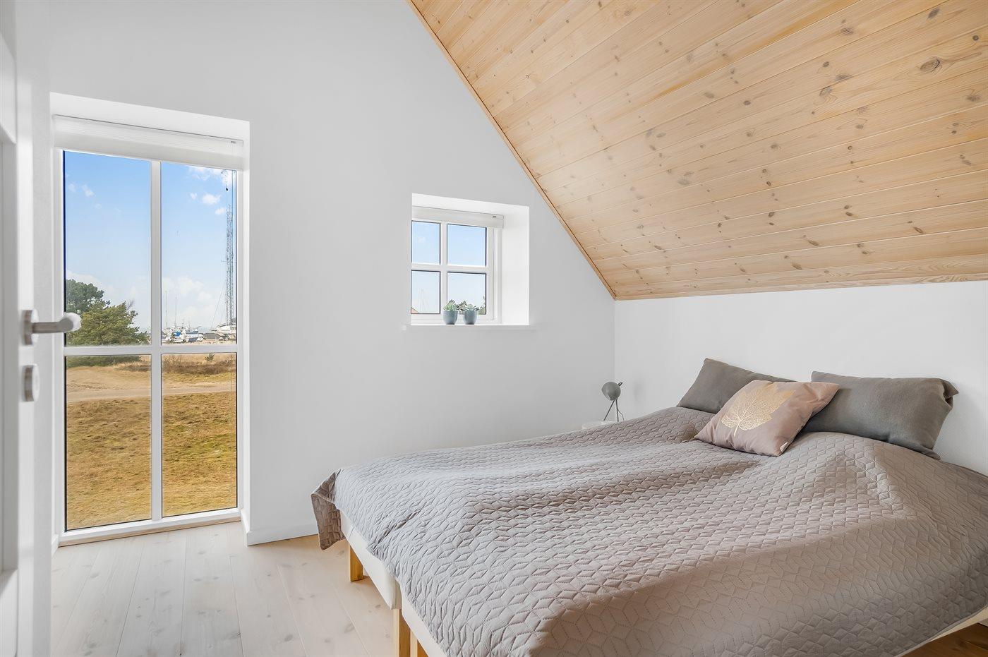 Der er i alt 3 soveværelser. Sovepladserne fordeler sig på: 4 sovepladser i dobbeltsenge. 2 sovepladser i enkeltsenge. 2 sovepladser i sovesofa (dobbelt). 2 af disse sovepladser befinder sig på husets hems.