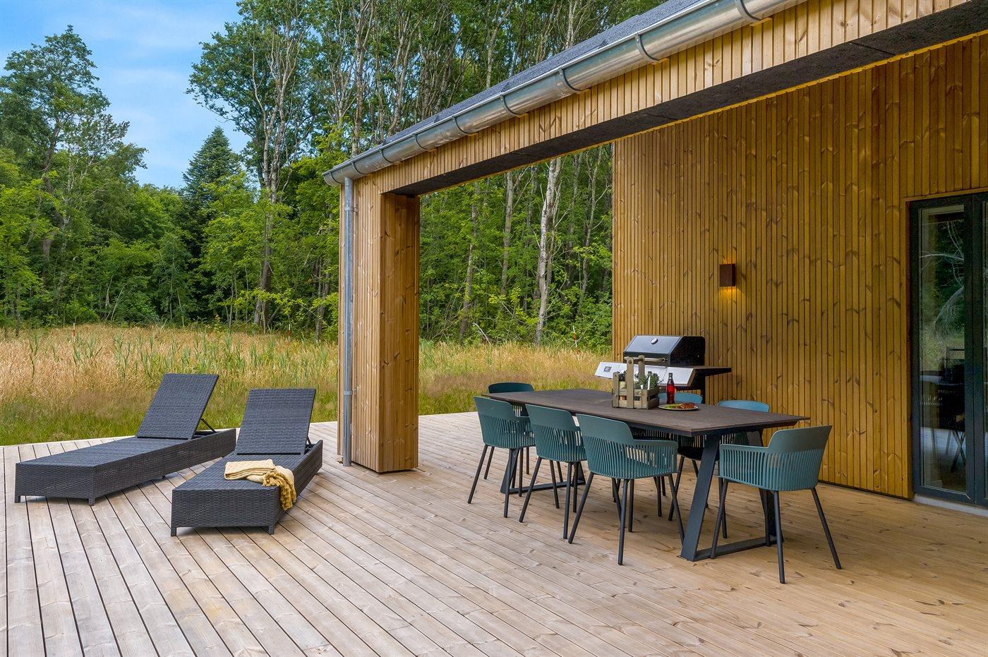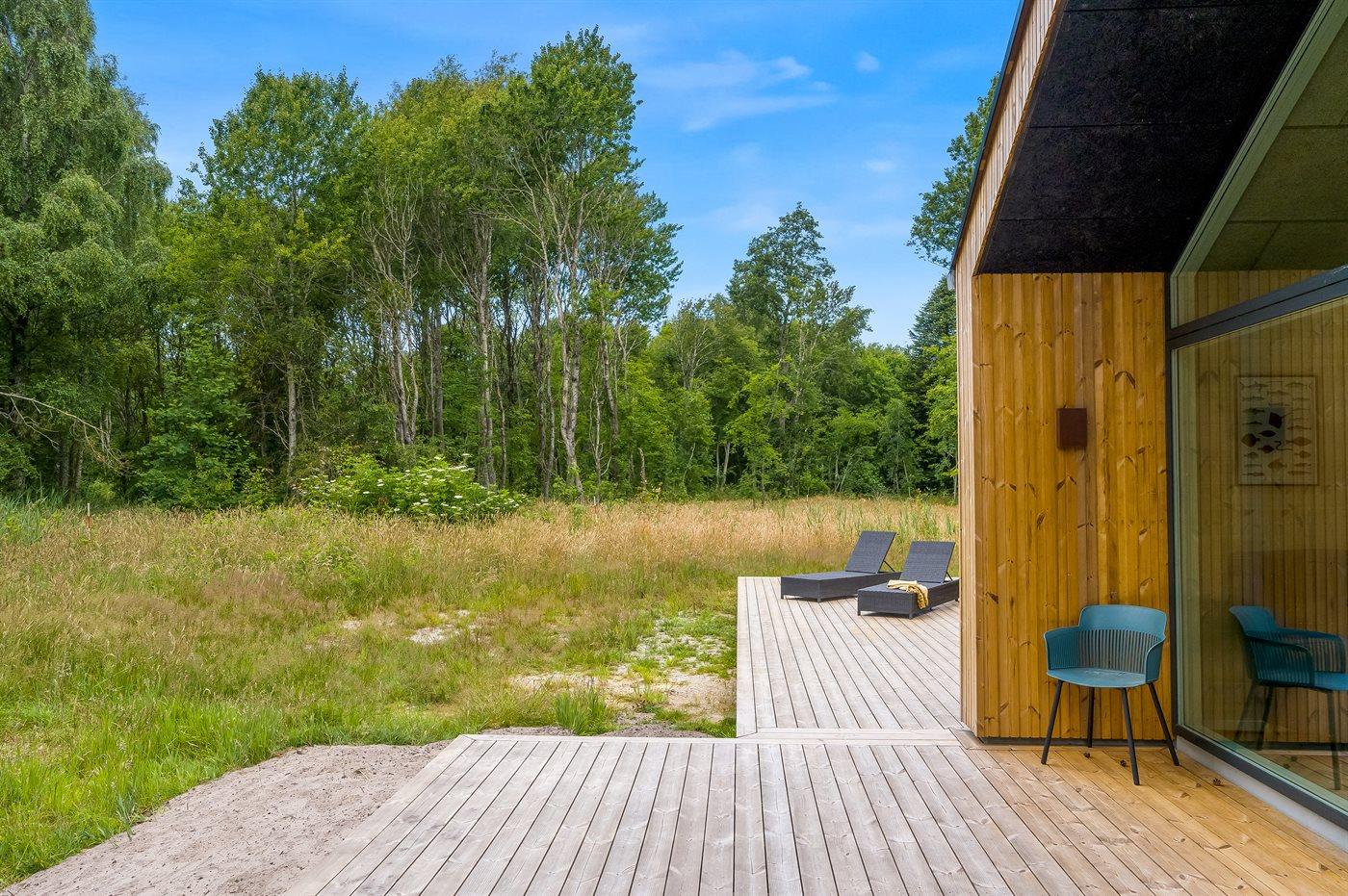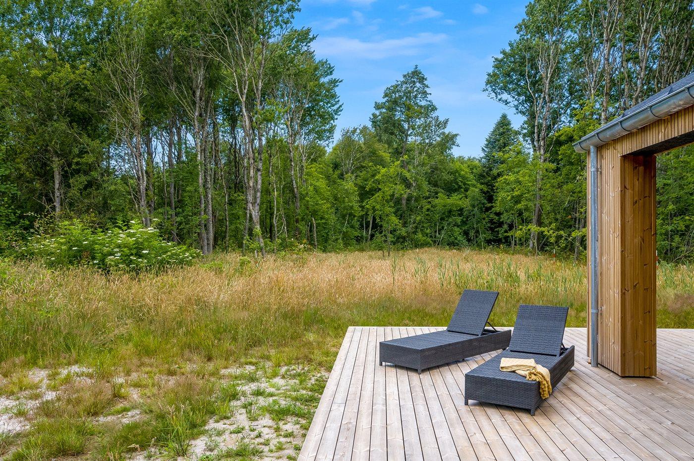 Nyopført sommerhus på Læsø med to badeværelser og stor træterrasse nær flotte badestrande og natur.