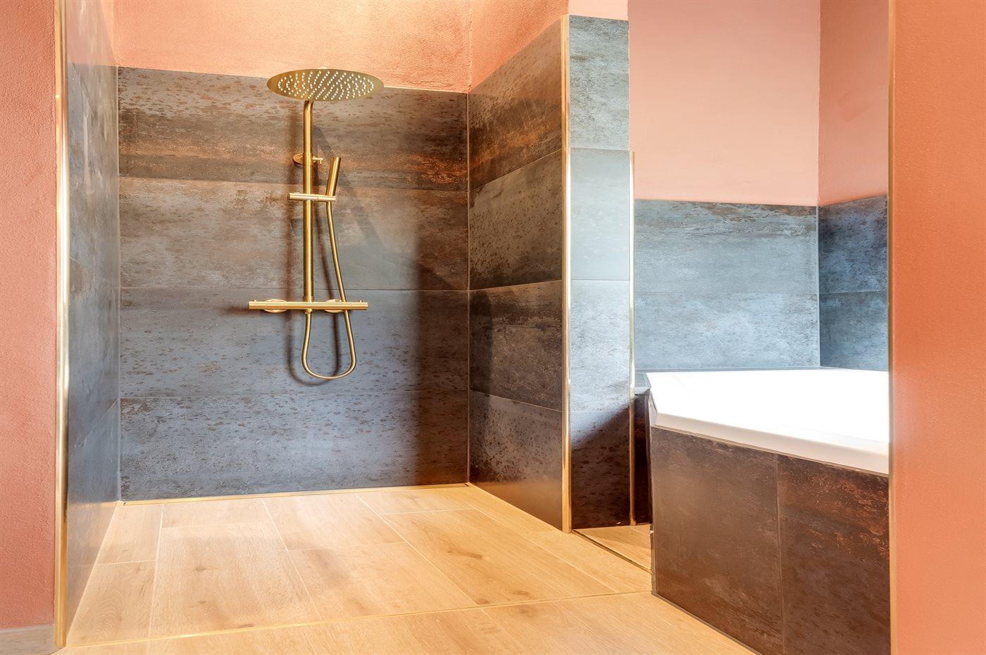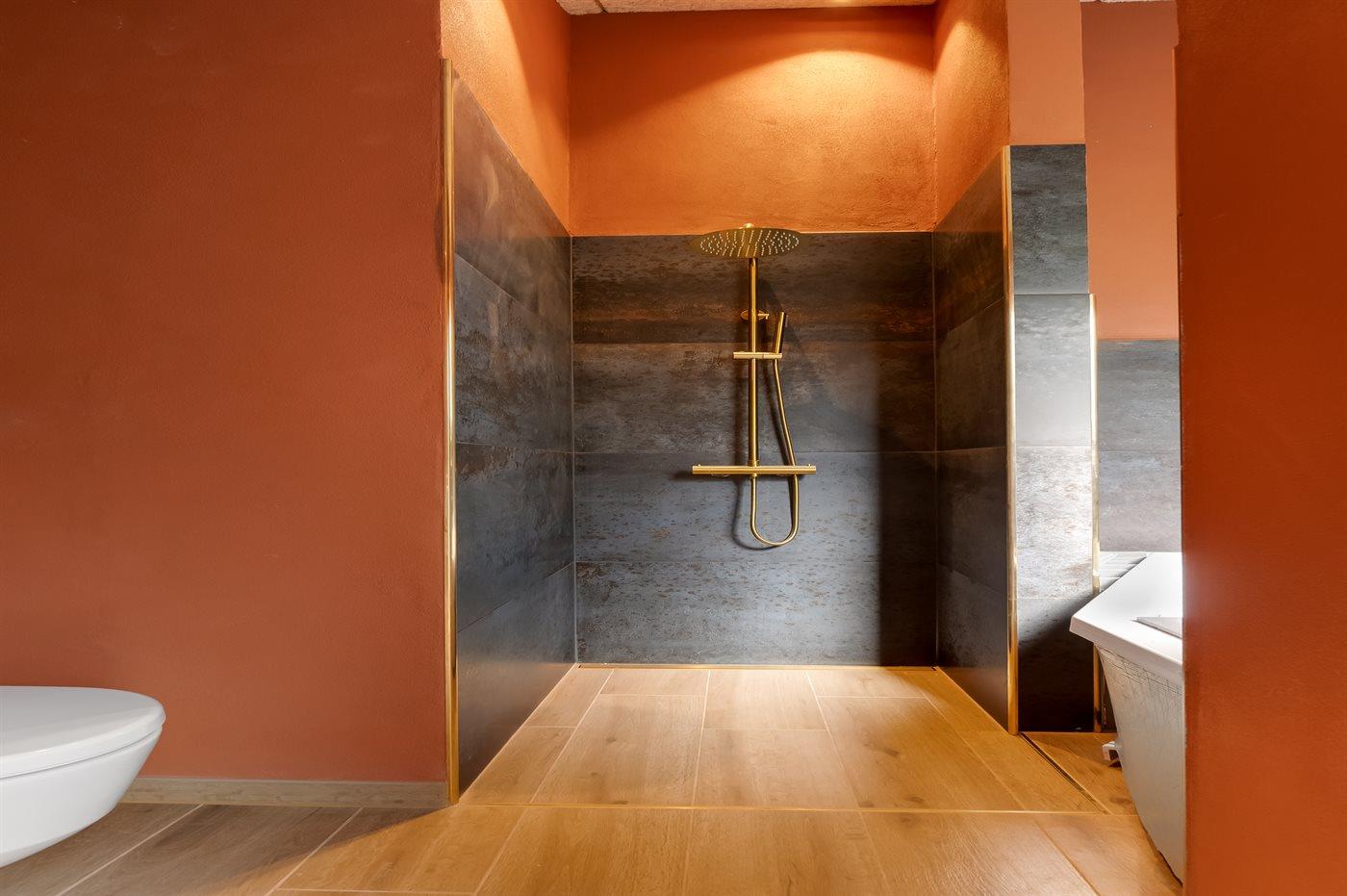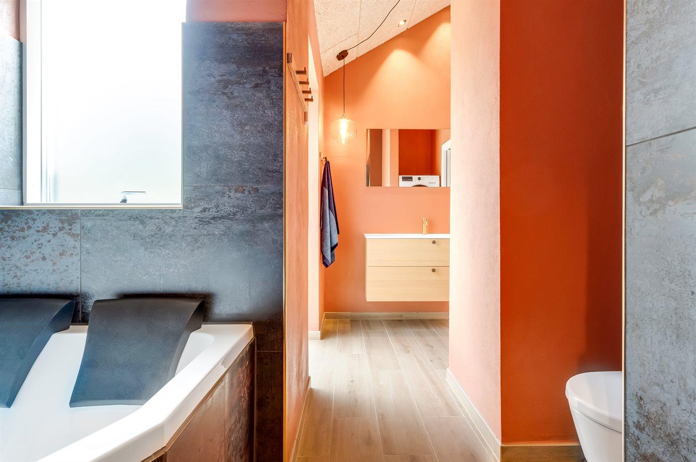 Der er 2 badeværelser med bruseniche og 2 toiletter. Der er gulvvarme på 2 badeværelser.. Badekar.