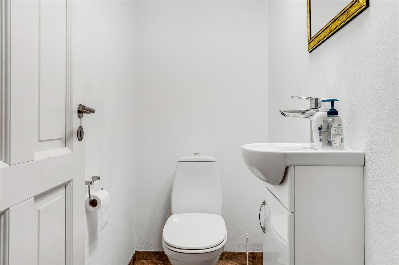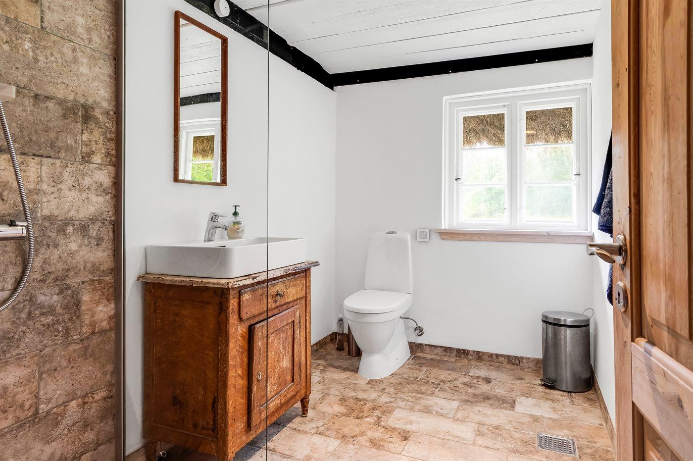 Der er 1 badeværelse med bruseniche og 2 toiletter. Der er gulvvarme på 1 badeværelse. Der er gulvvarme på gæstetoilettet.