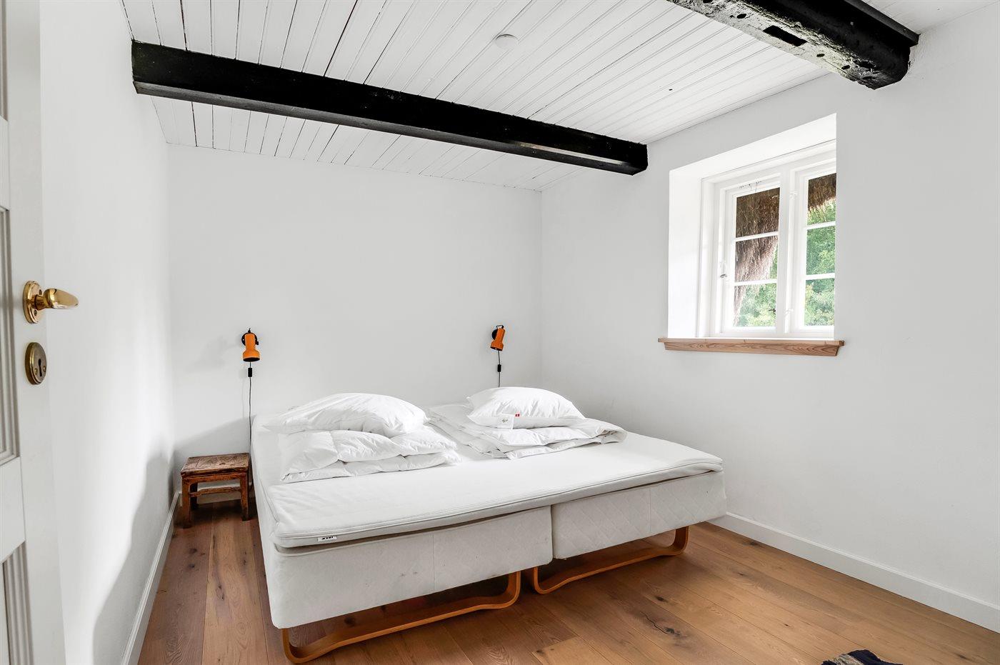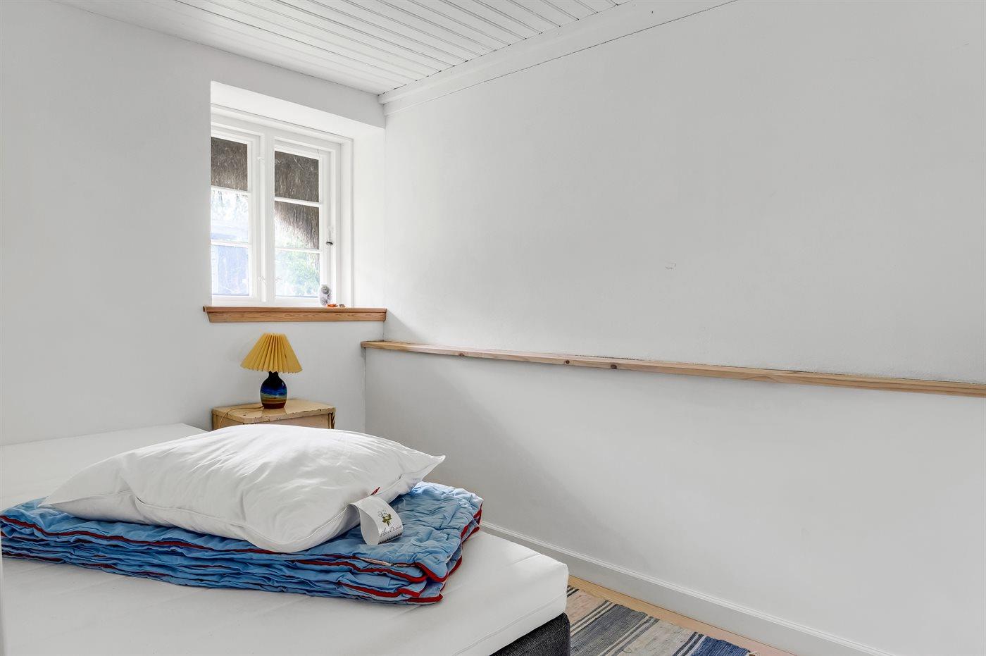 Der er i alt 5 soveværelser. Sovepladserne fordeler sig på: 6 sovepladser i dobbeltsenge. 2 sovepladser i enkeltsenge.
