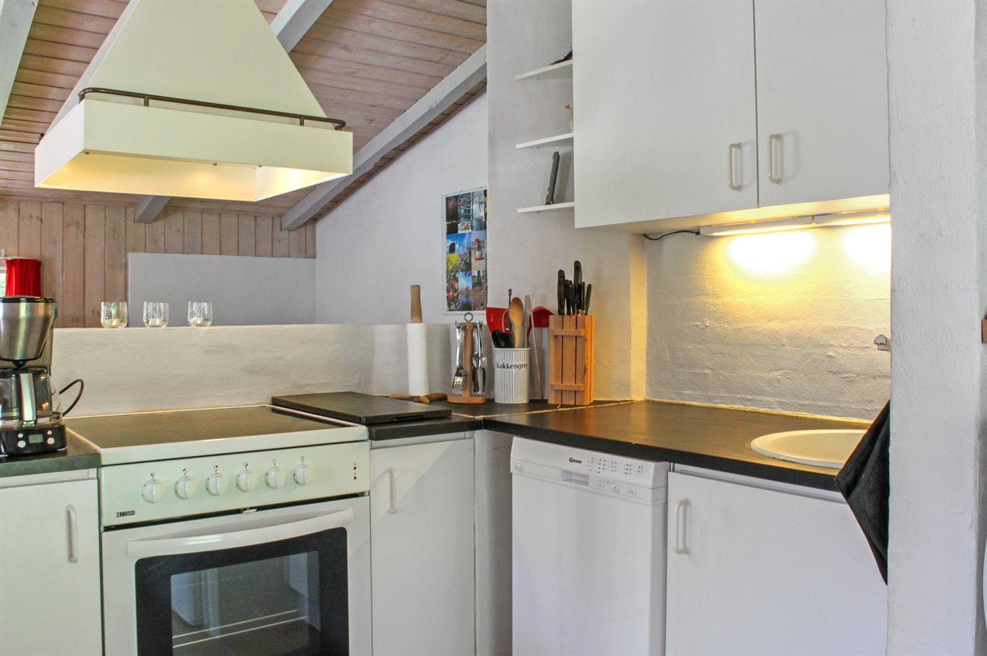 Køkkenet er udstyret med 1 køleskab. Der er 4 keramiske kogeplader, varmluftovn samt opvaskemaskine.