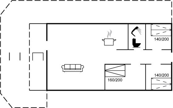 Sommerhuset egner sig til 6 personer. Ferieboligen er på 63 m² og er bygget i 1977. Det er ikke tilladt at medbringe husdyr. Ferieboligen er udstyret med energibesparende luft til luft varmepumpe. Ferieboligen har vaskemaskine. Frysekapacitet på 100 liter. Der er desuden brændeovn.
