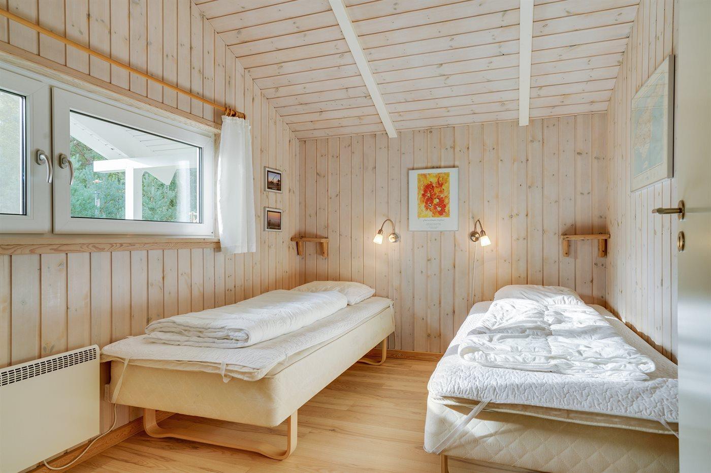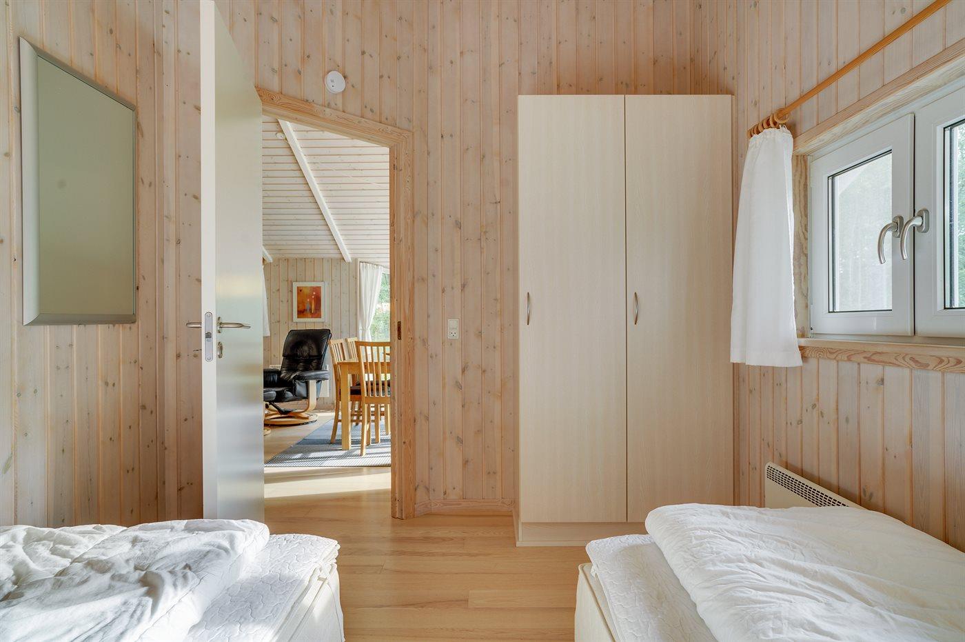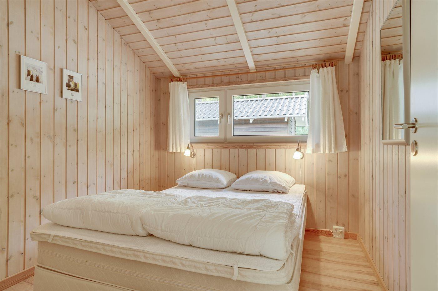 Der er i alt 3 soveværelser. Sovepladserne fordeler sig på: 4 sovepladser i dobbeltsenge. 2 sovepladser i enkeltsenge. Derudover er der 1 stk. barneseng.