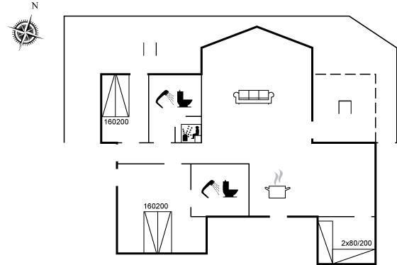 Der er i alt 3 soveværelser. Sovepladserne fordeler sig på: 4 sovepladser i dobbeltsenge. 2 sovepladser i enkeltsenge.