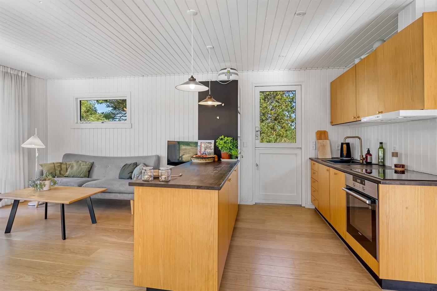 Det velindrettede sommerhus er renoveret i 2021 i nordisk stil og med en dejlig beliggenhed tæt på havet. Stuen og det veludstyrede køkken er husets hjerterum. Terrassemiljø byder på både afskærmede, overdækkede og helt åbne områder.