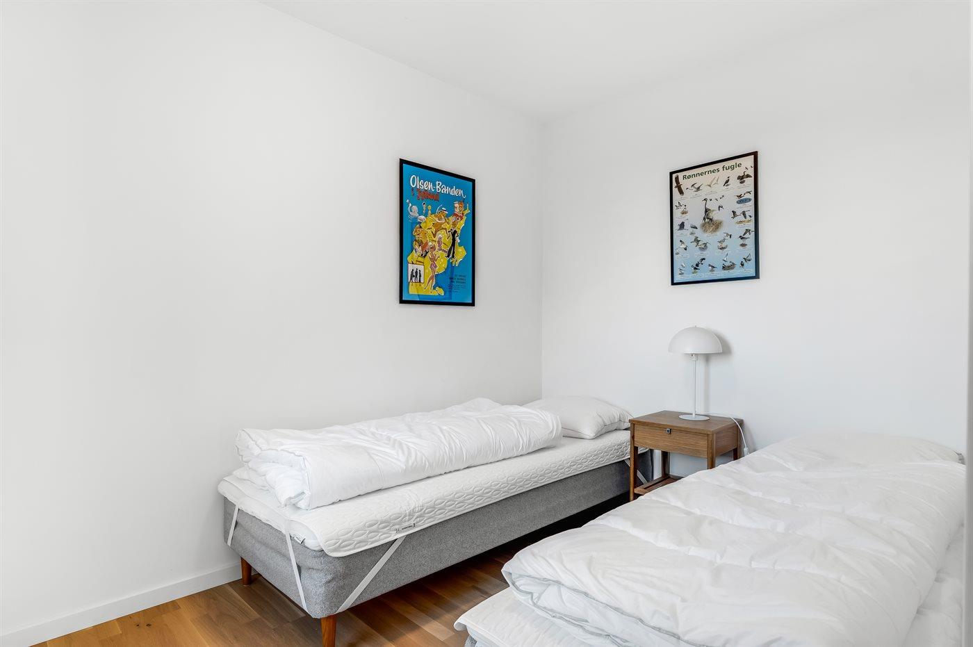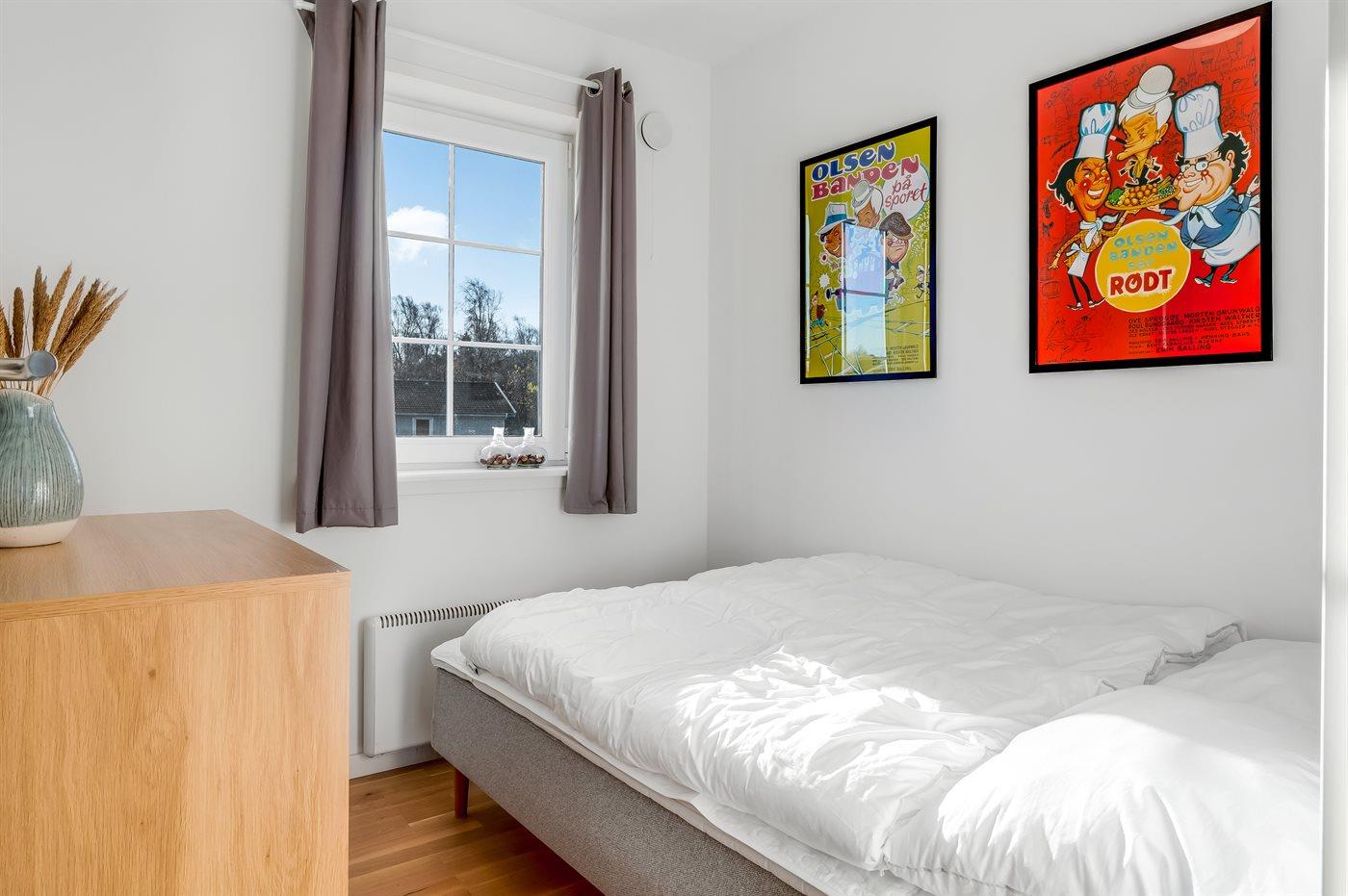 Der er i alt 2 soveværelser. Sovepladserne fordeler sig på: 2 sovepladser i dobbeltseng. 2 sovepladser i enkeltsenge.