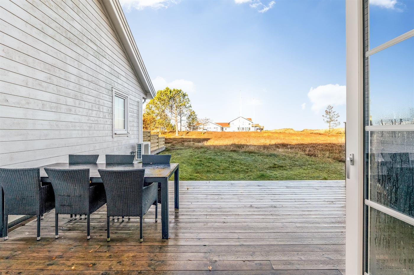 Nyrenoveret ferielejlighed ved Læsø Golf Resort med terrasse og udsigt over golfbanen.