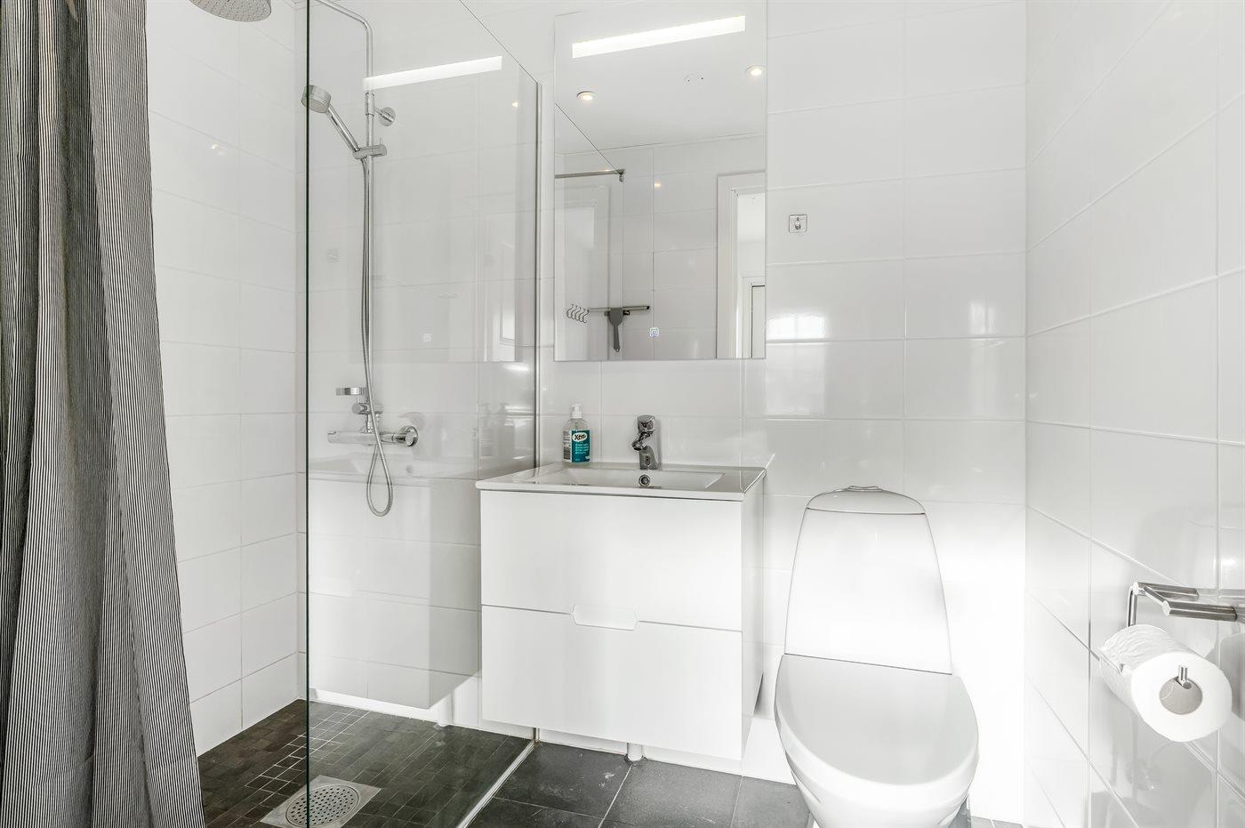 Der er 1 badeværelse med bruseniche og 1 toilet.. Der er gulvvarme på 1 badeværelse.