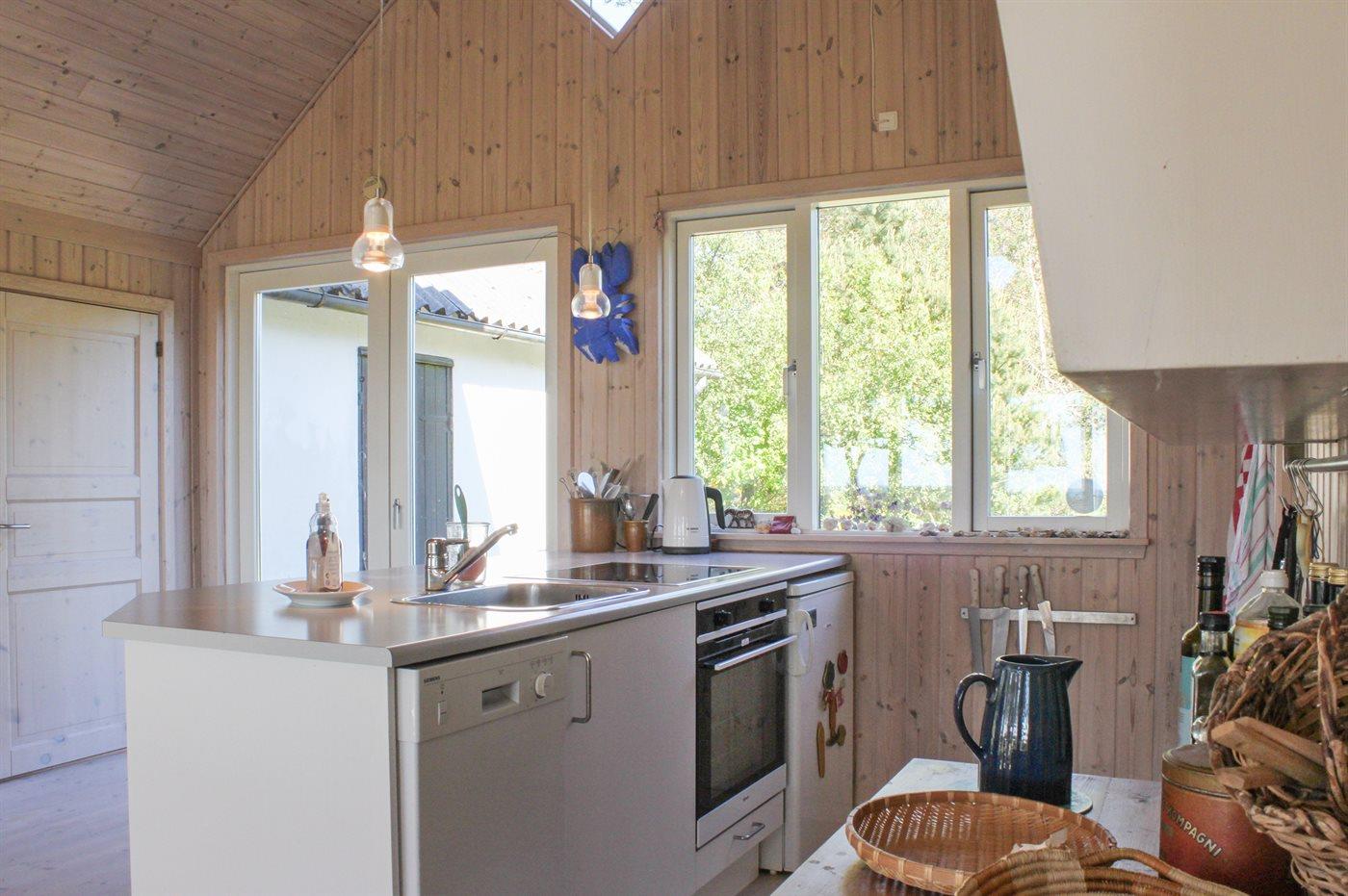 Køkkenet er udstyret med 1 køleskab. Der er 4 keramiske kogeplader, bageovn samt opvaskemaskine.