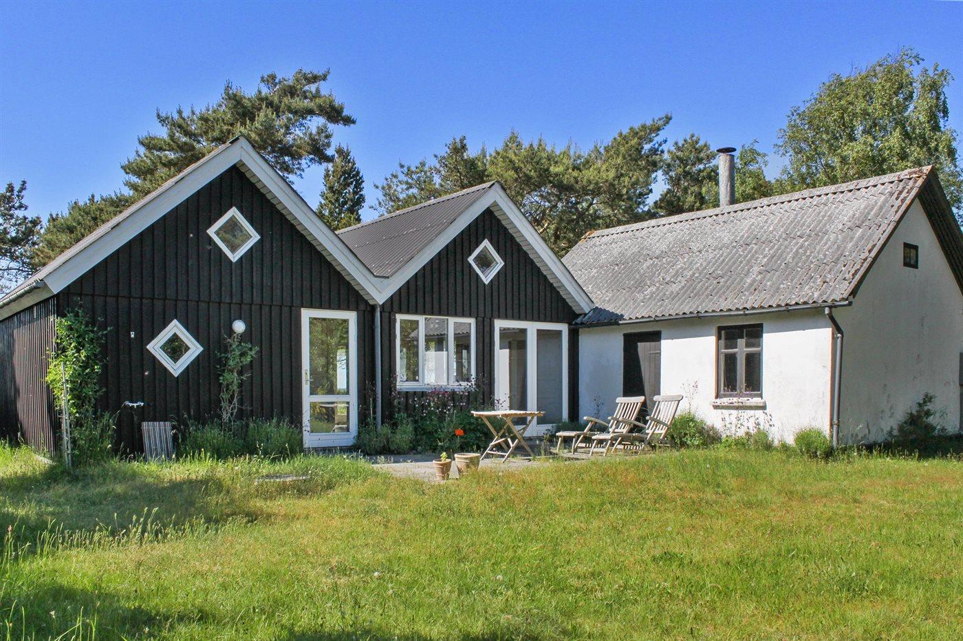 Hyggeligt lille feriehus på Læsø med panoramaudsigt over havet og naturgrund tæt på stranden.