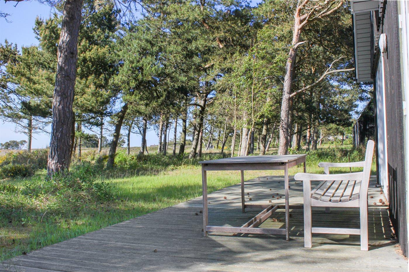 Ferieboligen er beliggende på en 800 m² stor naturgrund. Der er 200 m til havet. Nærmeste forretning er beliggende i en afstand af 3000 m. Parkering ved ferieboligen.