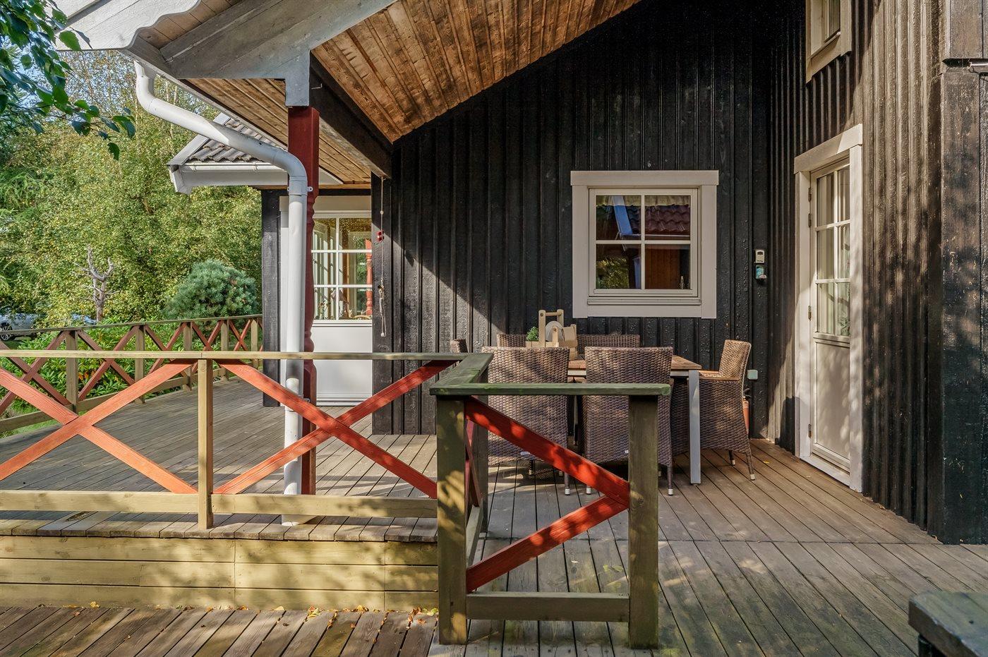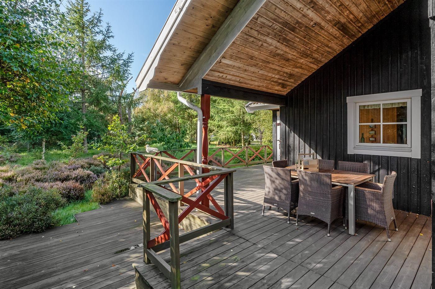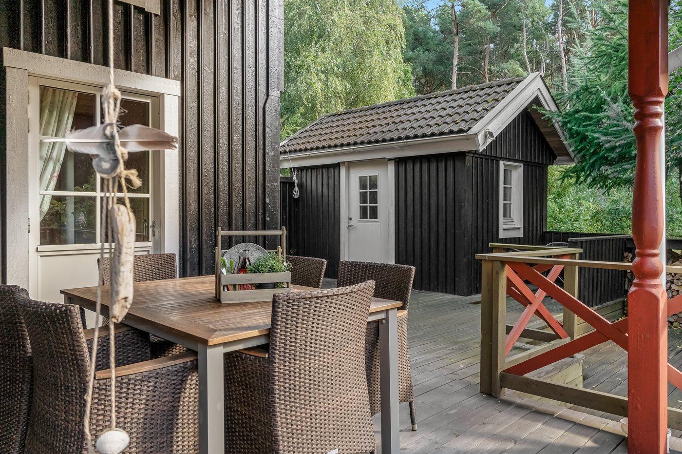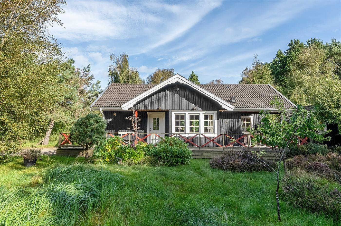 Flot svensk bjælkehytte. Beliggende på dejlig solrig lynggrund i attraktivt område.