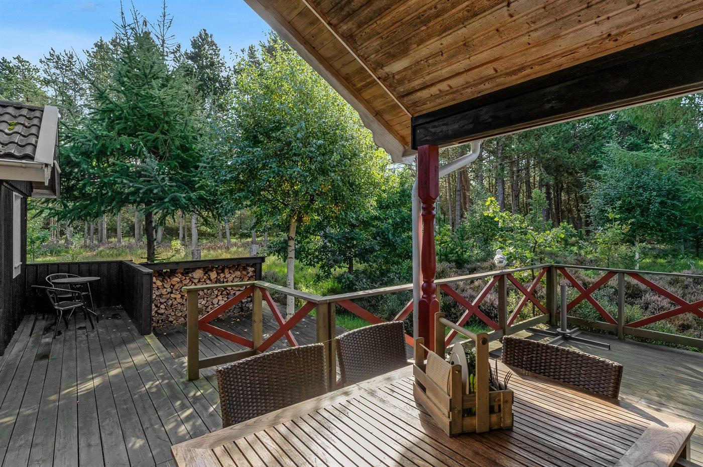 Ferieboligen er beliggende på en 1920 m² stor naturgrund. Der er 350 m til havet. Nærmeste forretning er beliggende i en afstand af 1400 m. Til ferieboligen hører 50 m² terrasseareal. Desuden er der 16 m² overdækket terrasse. Der er redskabsrum.