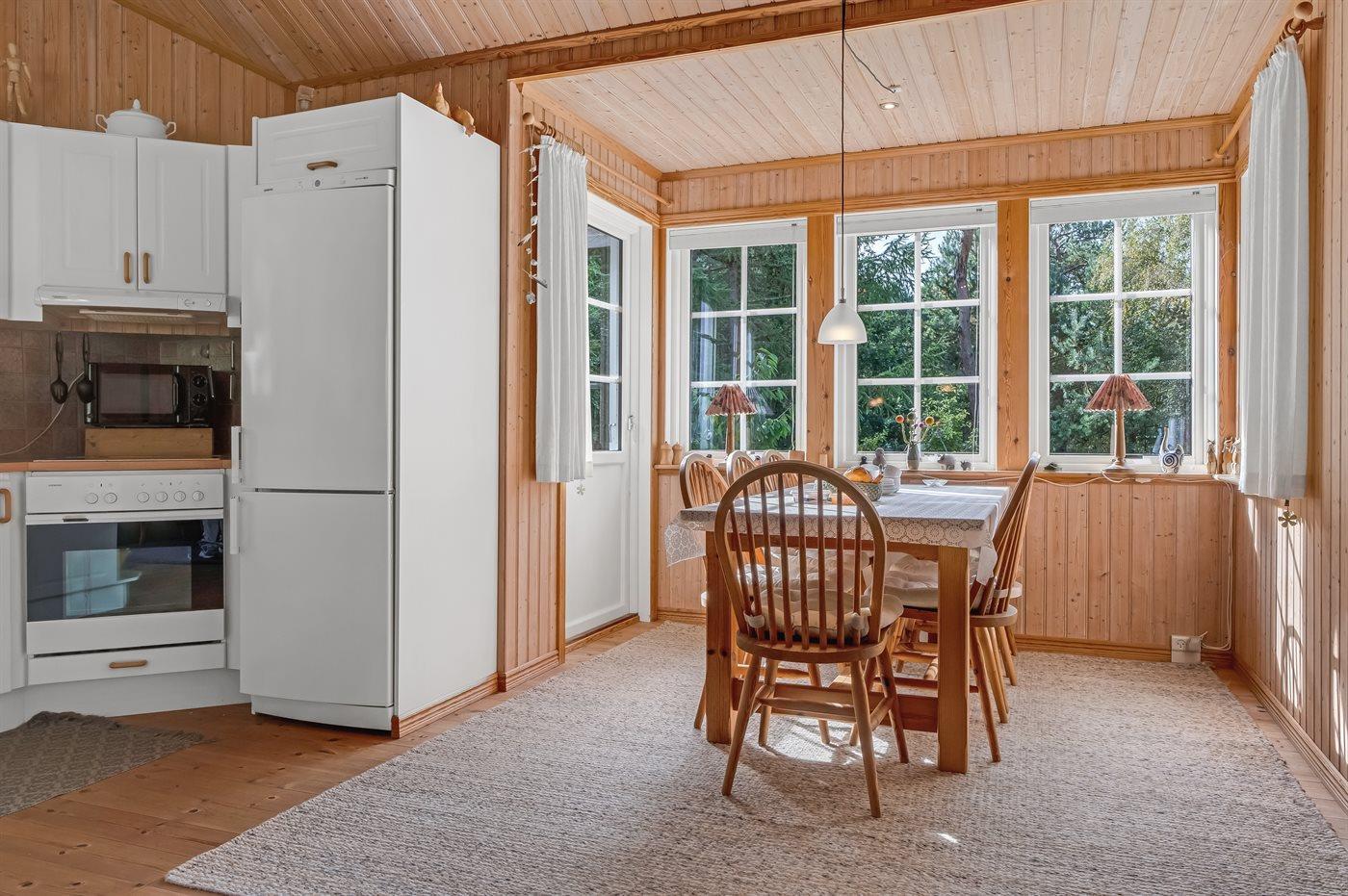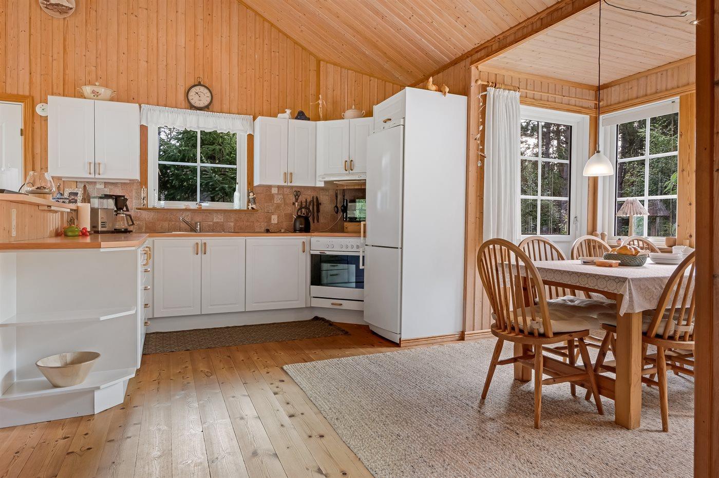 Køkkenet er udstyret med 1 køleskab. Der er 4 keramiske kogeplader, varmluftovn, mikrobølgeovn samt opvaskemaskine.