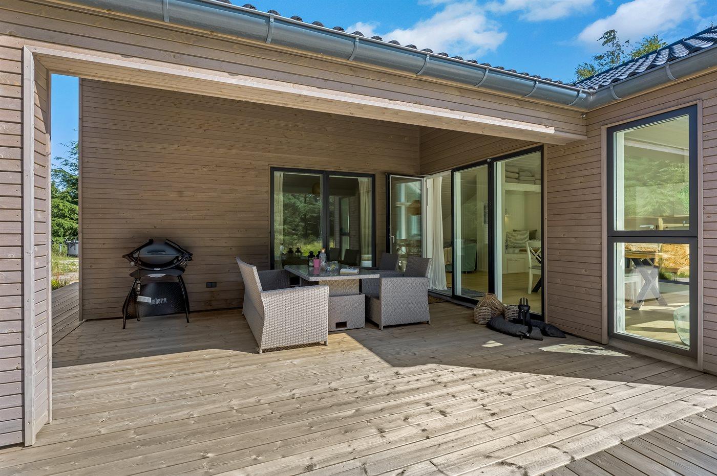Ferieboligen er beliggende på en 1916 m² stor naturgrund. Der er 575 m til havet. Nærmeste forretning er beliggende i en afstand af 1250 m. Der er en golfbane i en afstand af 9200 m. Til ferieboligen hører åbent terrasseareal. Desuden er der overdækket terrasse. Der ligger en legeplads i en afstand af 1250 m. Udendørs bruser. Grill til rådighed. Parkering ved ferieboligen.