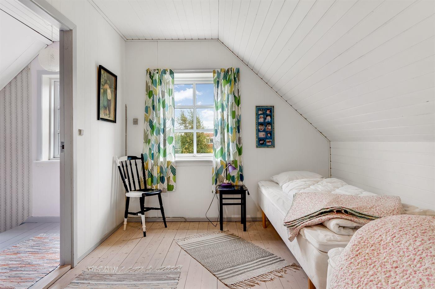 Der er i alt 2 soveværelser. Sovepladserne fordeler sig på: 2 sovepladser i dobbeltseng. 2 sovepladser i enkeltsenge. 1 soveplads i sovesofa (enkelt). 1 af disse sovepladser befinder sig i stuen.