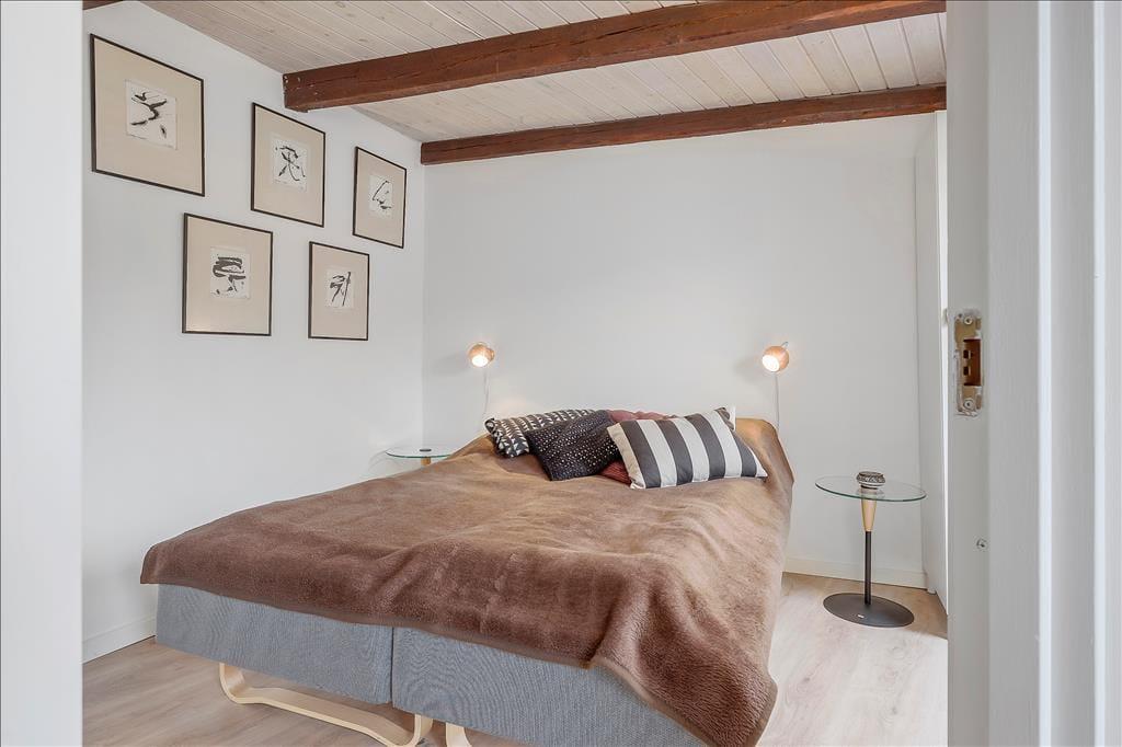På grund af den centrale beliggenhed er det både nemt og fristende at bruge en stor del af tiden ved det stemningsfulde havneområdet eller i byens hyggelige gader – men du kan også glæde dig til at tage den med ro hjemme i den pæne og velindrettede feriebolig. Efter en vellykket renovering i 2020 er alle rummene dejlige at opholde sig i, inklusiv de tre soveværelser, hvoraf to er placeret på førstesalen. Når du og dine kære ikke sover længe eller får en siesta på værelserne, kan I samles i stueetagens opholdsafdeling, der byder på køkken og stue i åben forbindelse. Køkkenet er rummeligt, så der er god plads, hvis børnene vil hjælpe dig med at bage boller eller lave aftensmad, og stuens sofaafdeling er en perfekt krog, når I vil hygge igennem med krydsogtværser eller en film på fladskærms-tv’et.